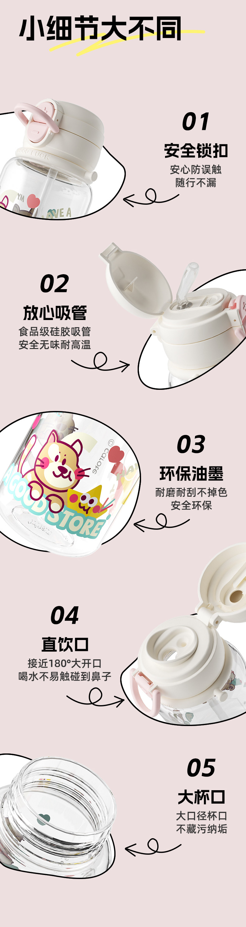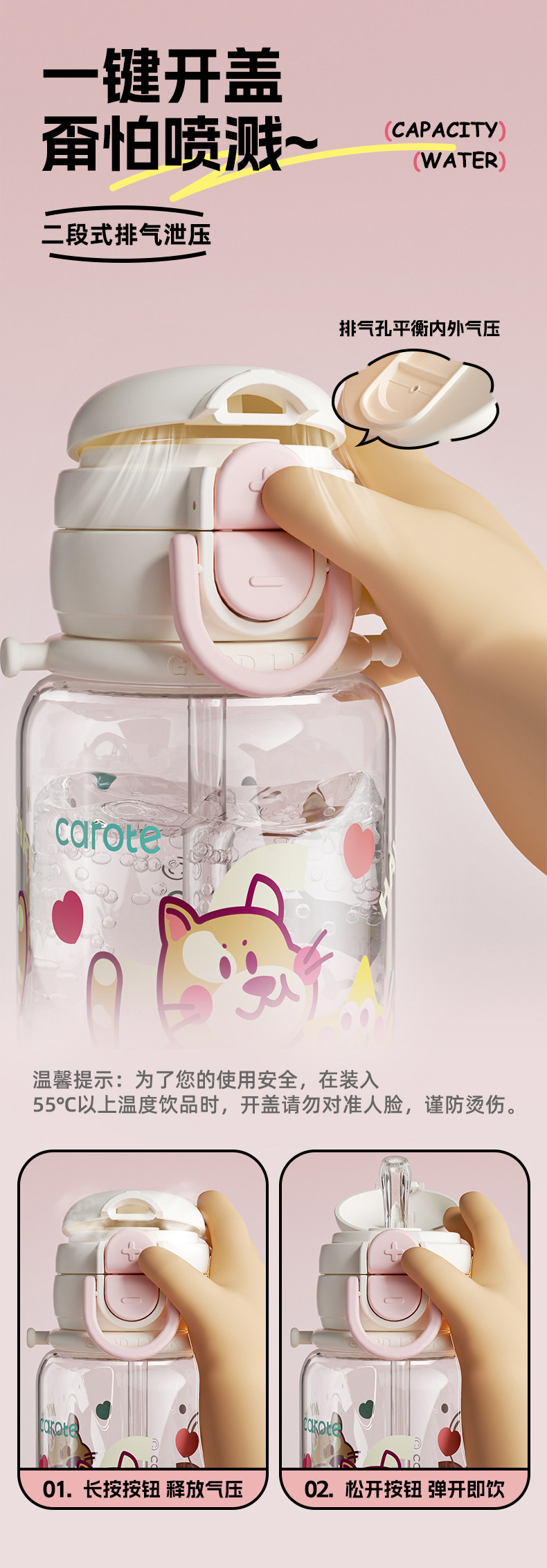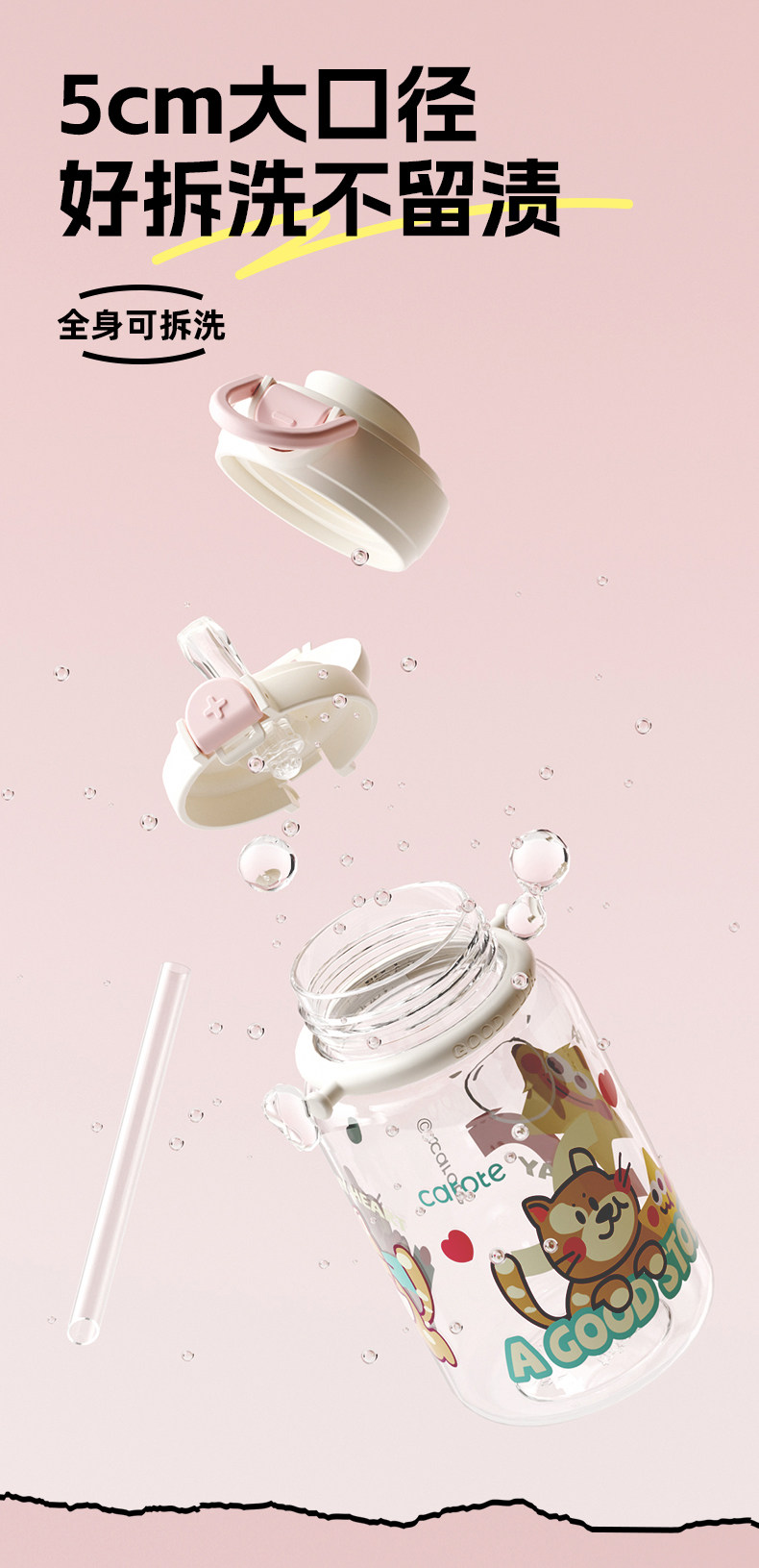 Вместительный и большой стакан со стаканом, портативная чайная чашка, пластиковый милый детский чайник