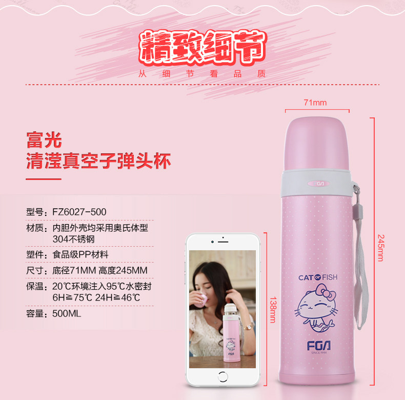 富光 Пуля, вакуумный портативный стакан для влюбленных из нержавеющей стали для мальчиков и девочек для школьников с гравюрой, 500 мл