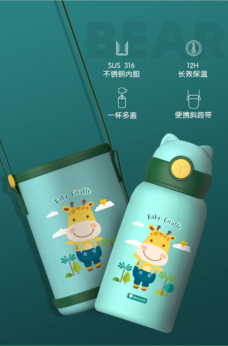 Детский стакан, трубочка, чайник для школьников для детского сада подходит для мужчин и женщин из нержавеющей стали, защита при падении