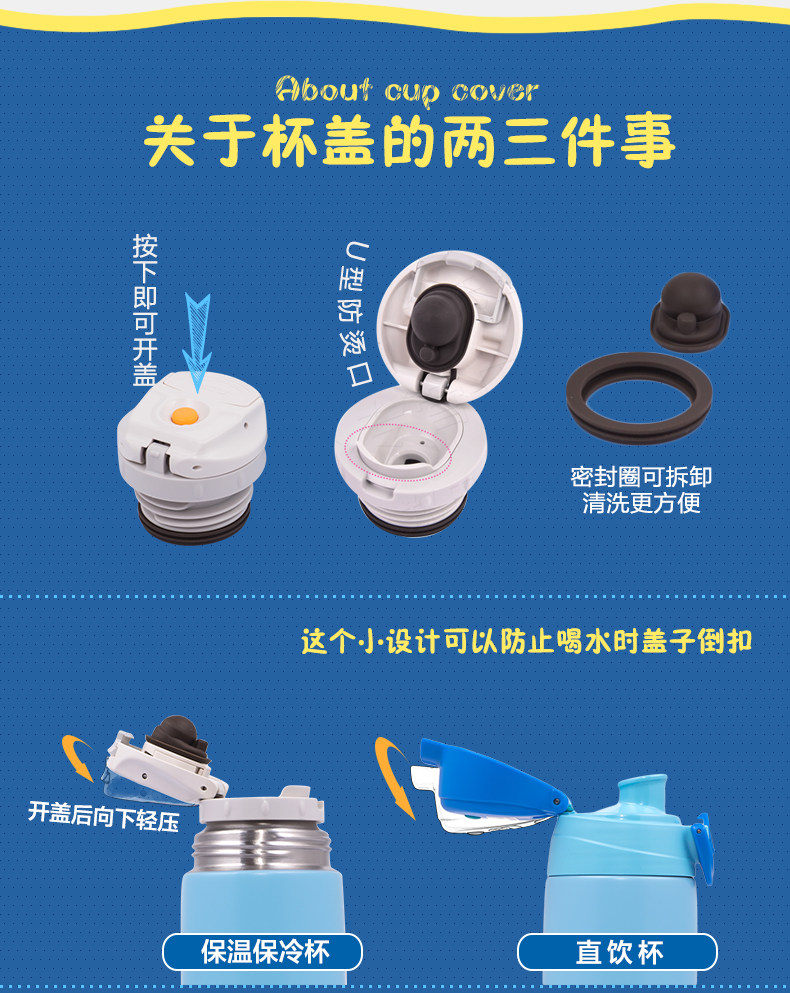- Крышка для прямого питья Blue Mickey, 600 мл + маленькая крышка для чашки