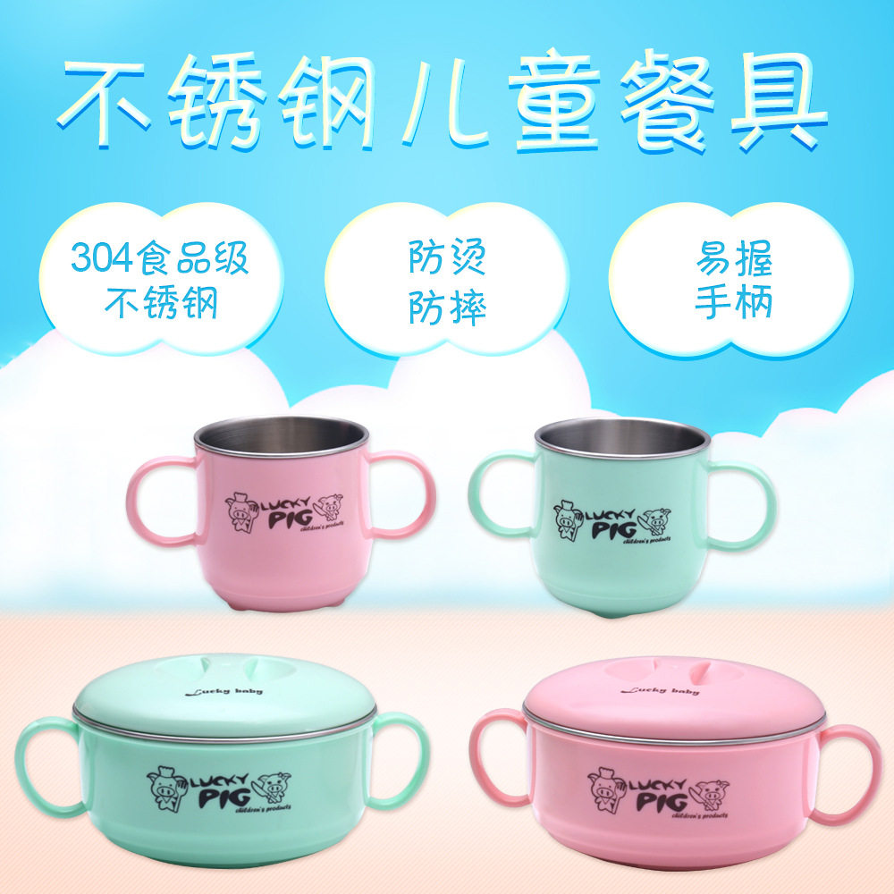 Мультяшный детский нескользящий стакан из нержавеющей стали, защита от ожогов