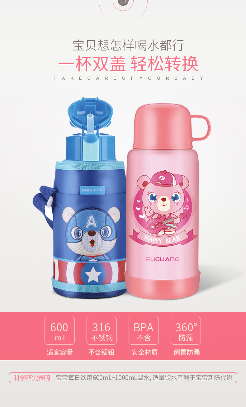 富光 Детский стакан подходит для мужчин и женщин, портативная переносная трубочка для детского сада со стаканом, вместительная и большая чайная чашка для школьников, чайник