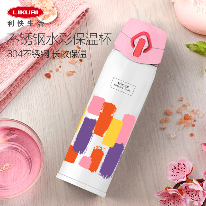 利快 Акварель, портативный стакан подходит для мужчин и женщин, чайная чашка из нержавеющей стали, 500 мл, нержавеющая сталь AISI 304, подарок на день рождения
