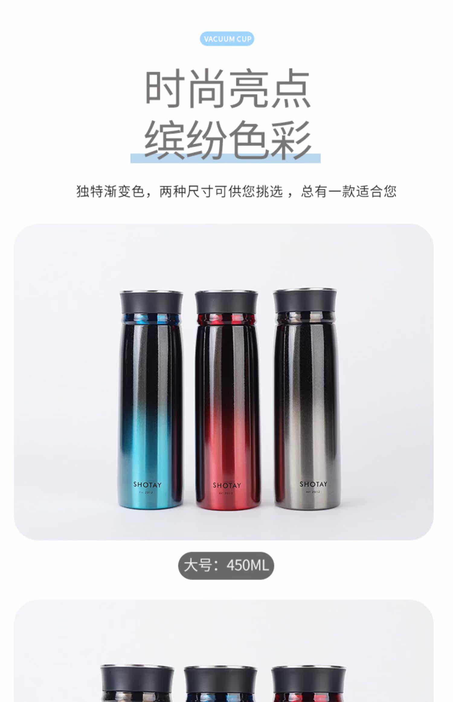 Стакан из нержавеющей стали подходит для мужчин и женщин, трендовый термос, модная чайная чашка, нержавеющая сталь AISI 304, градиент