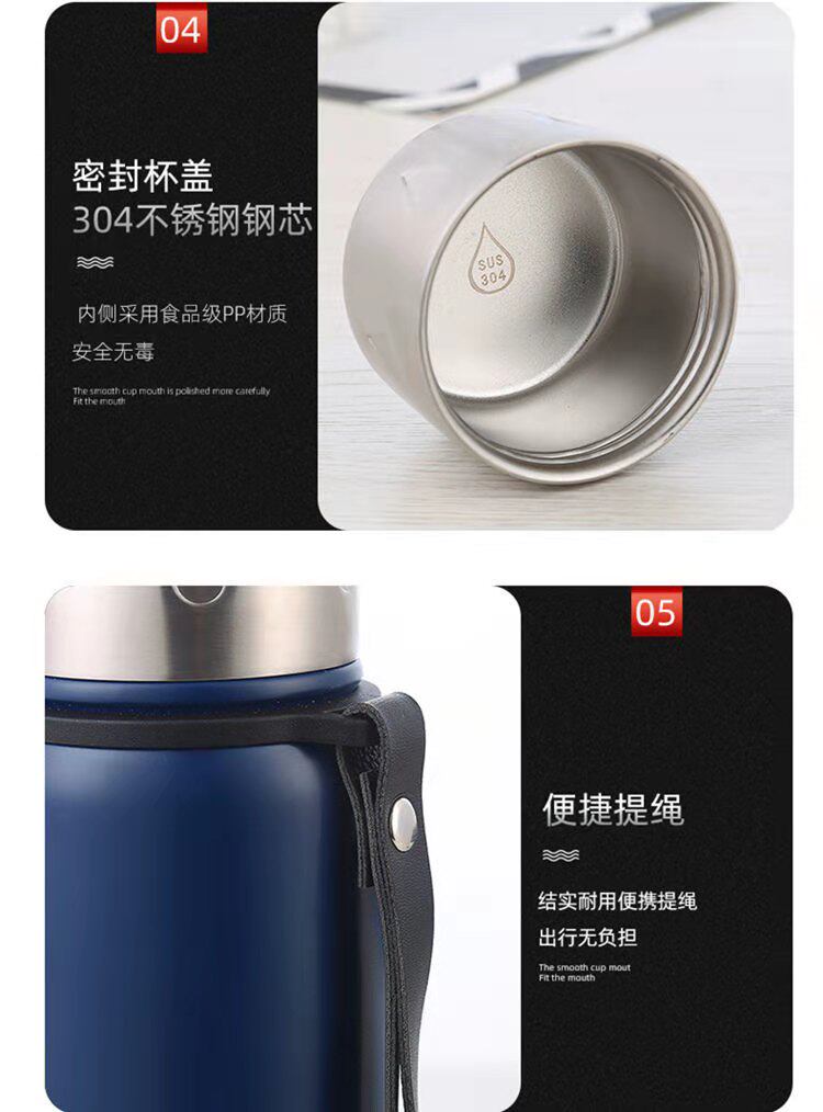 Стакан, термос из нержавеющей стали, портативный дорожный вместительный и большой чайник подходит для мужчин и женщин, нержавеющая сталь AISI 304, эффект подтяжки