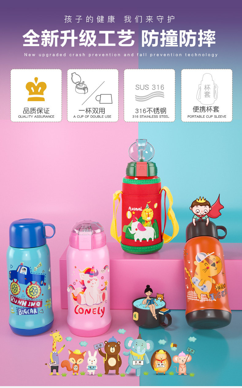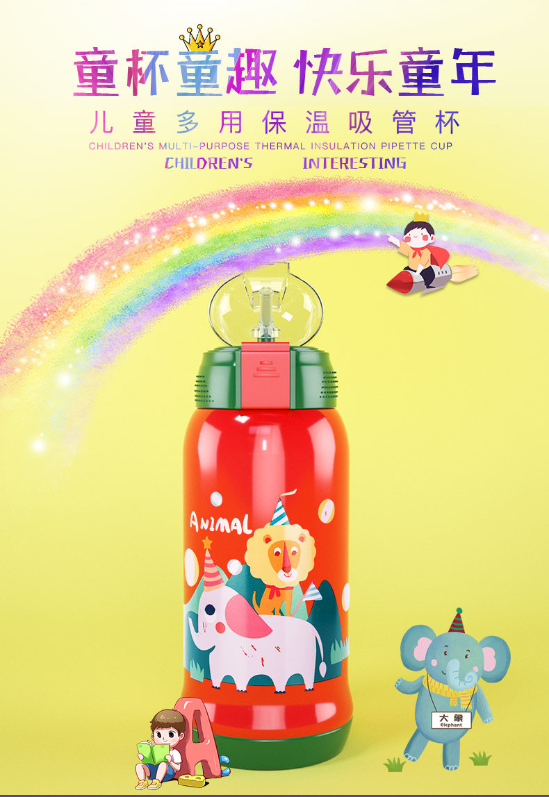 Детский стакан, чайник, детская трубочка подходит для мужчин и женщин для детского сада для школьников из нержавеющей стали со стаканом, защита при падении
