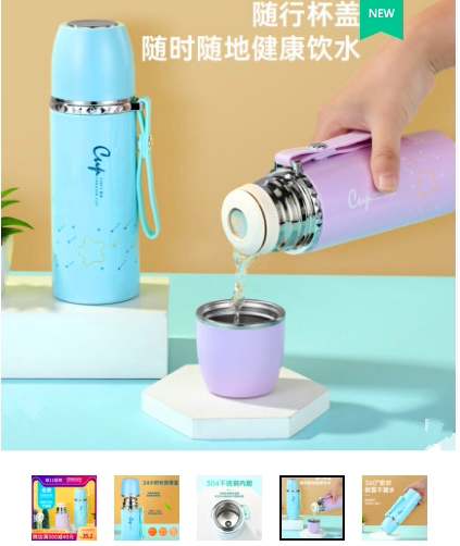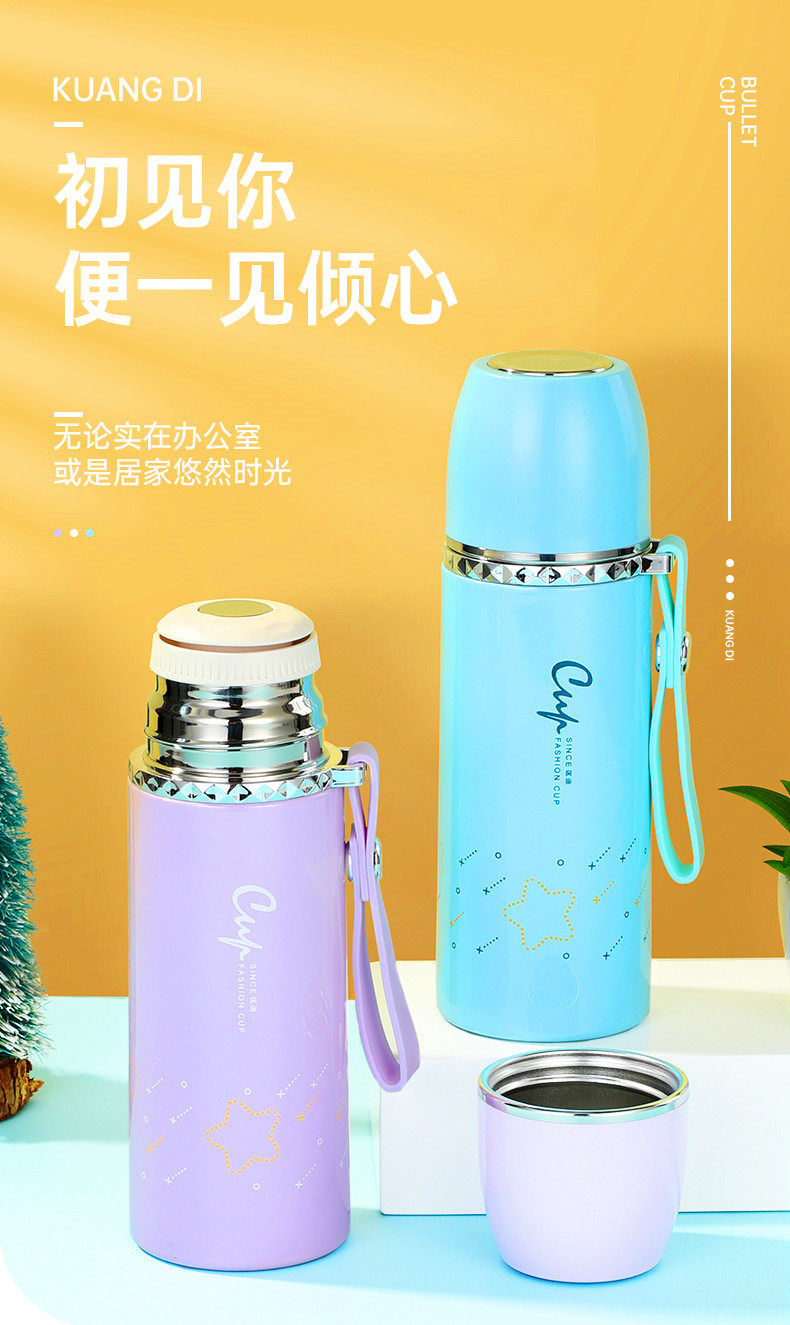 匡迪 Стакан для мальчиков и девочек, пуля, портативный вкладыш из нержавеющей стали для школьников, милый чайник, нержавеющая сталь AISI 304