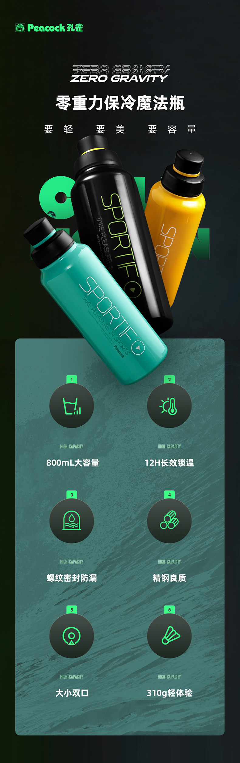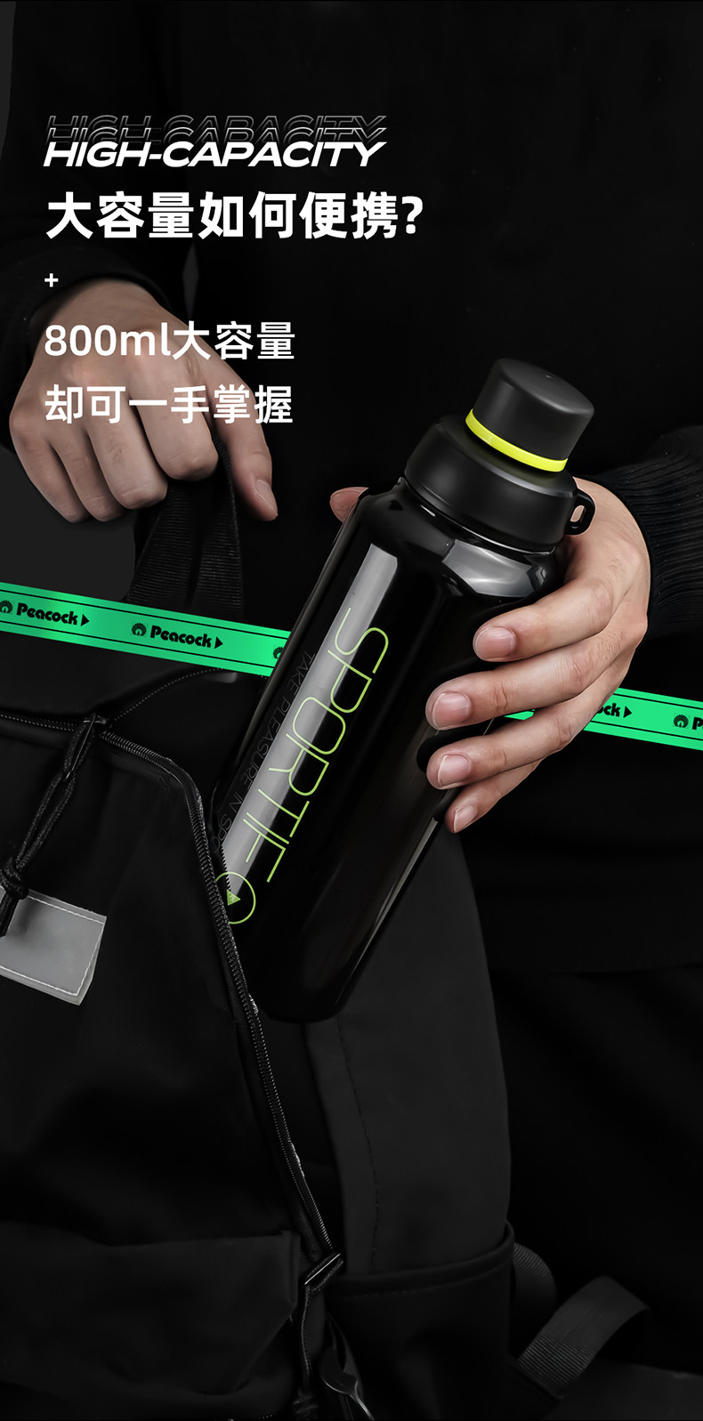 Мужской японский спортивный вместительный и большой летний стакан из нержавеющей стали, 800 мл