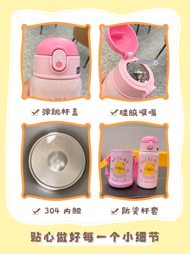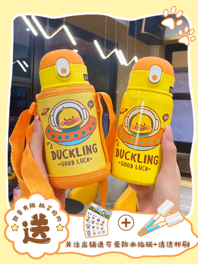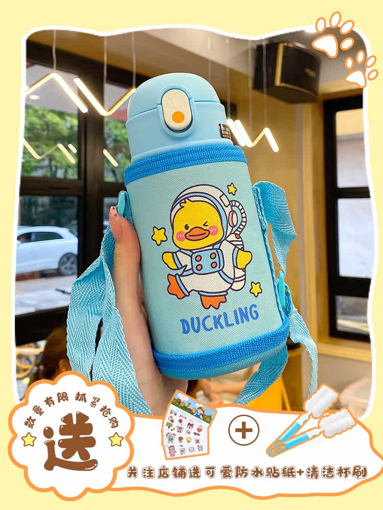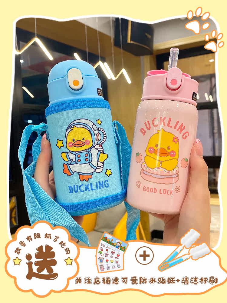 Детская трубочка, мультяшный стакан, сумка через плечо для друга, портативный чайник со стаканом