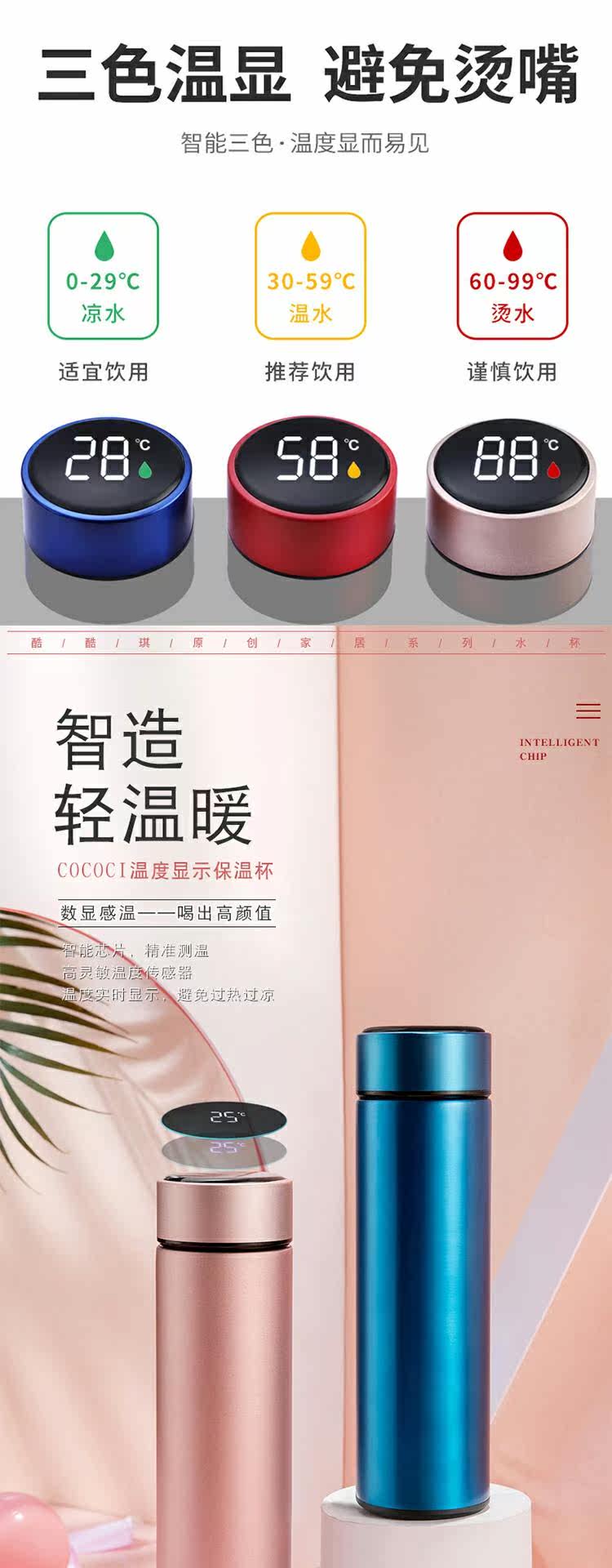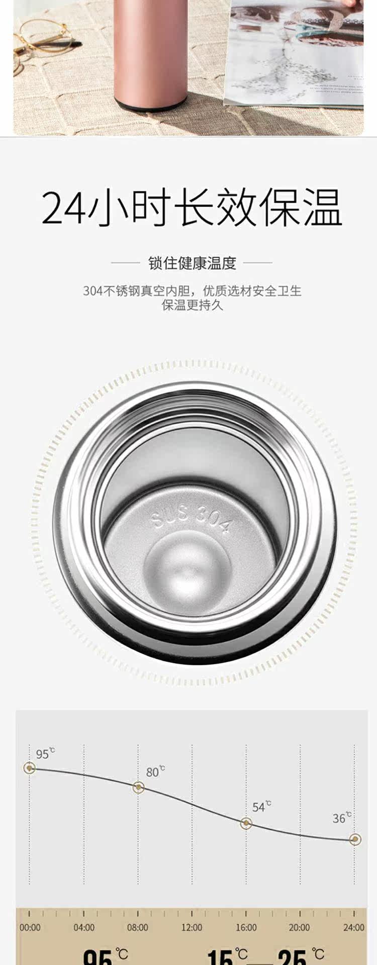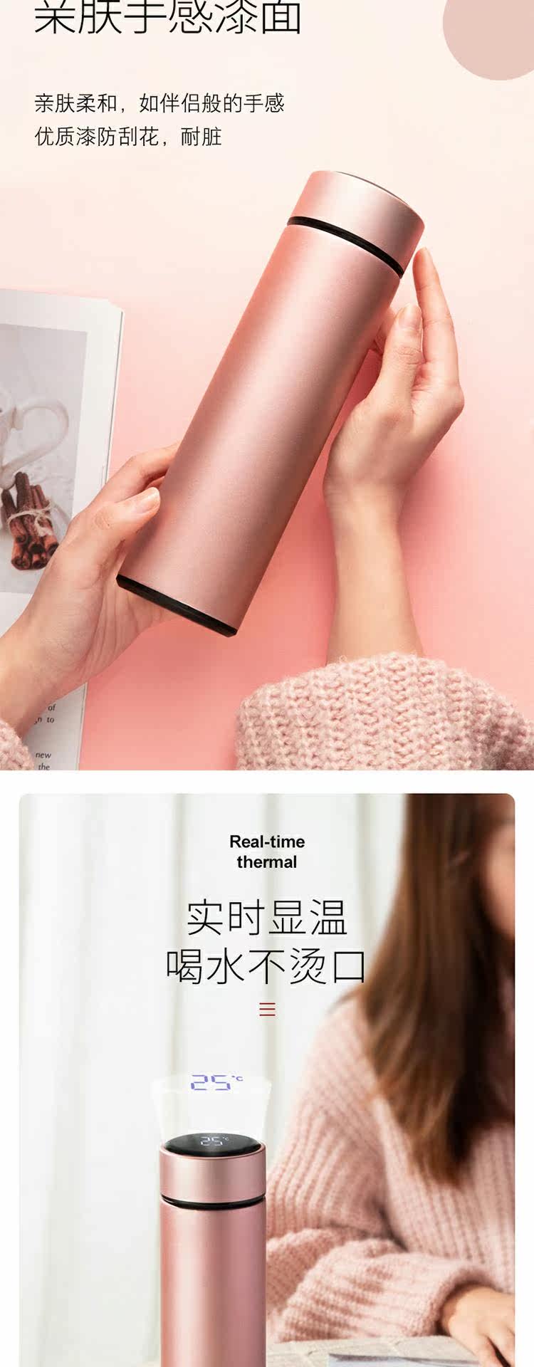 Умный портативный стакан, вместительная и большая чайная чашка из нержавеющей стали, подарок на день рождения, простой и элегантный дизайн, нержавеющая сталь AISI 304, измерение температуры
