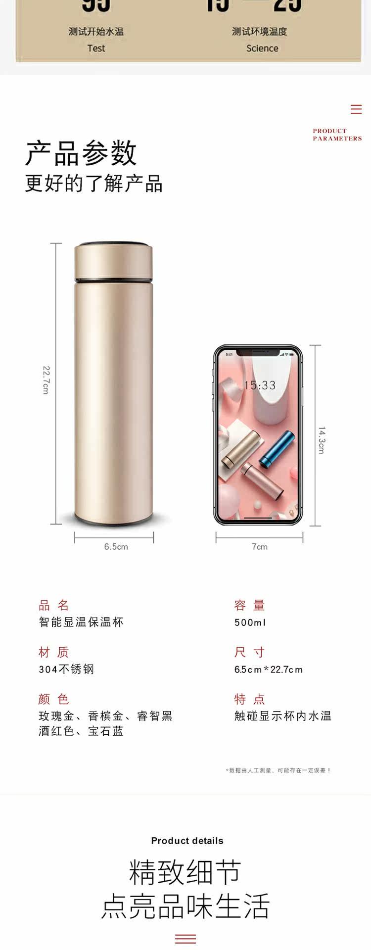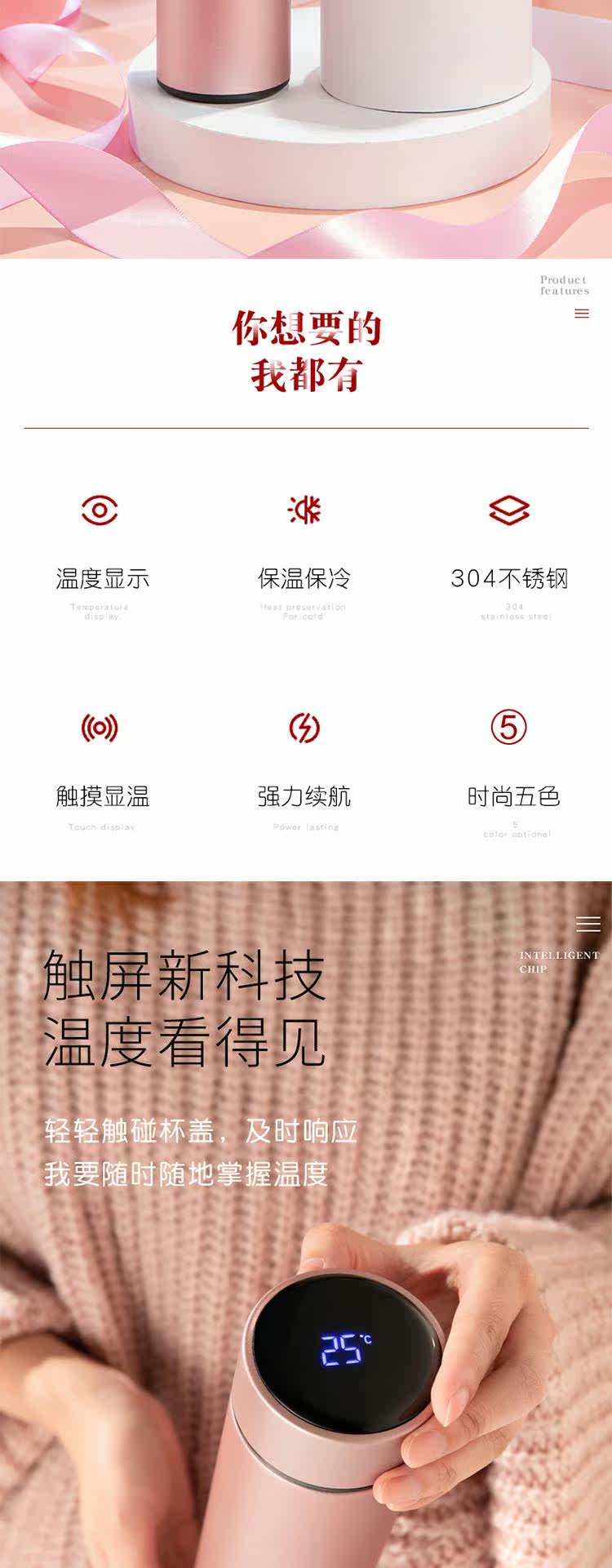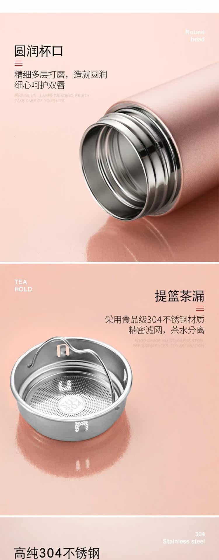 Умный портативный стакан, вместительная и большая чайная чашка из нержавеющей стали, подарок на день рождения, простой и элегантный дизайн, нержавеющая сталь AISI 304, измерение температуры