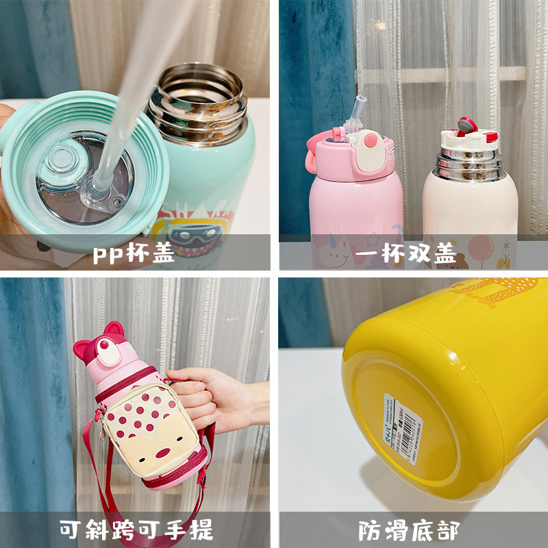 Вместительный и большой детский стакан, трубочка из нержавеющей стали для детского сада со стаканом, милый портативный чайник для школьников