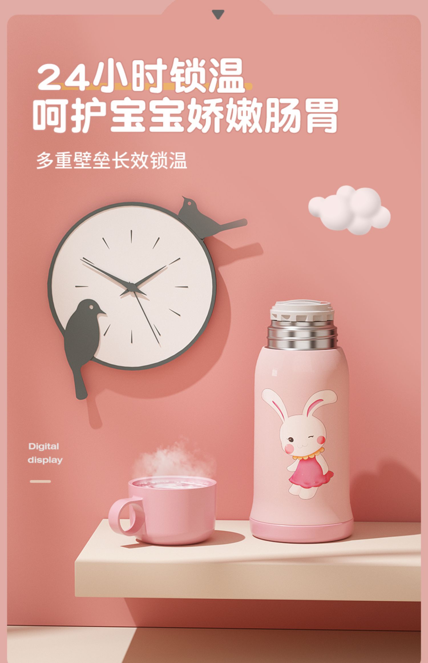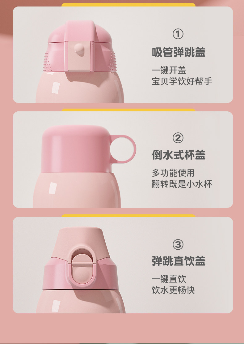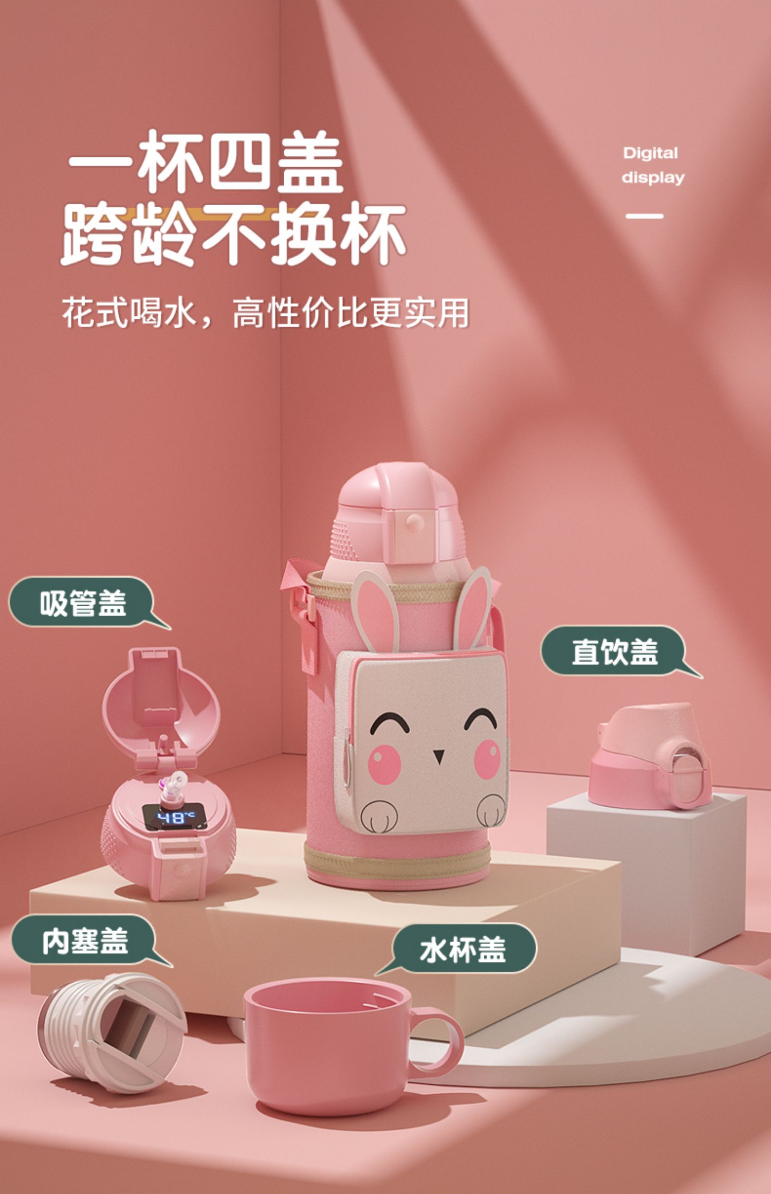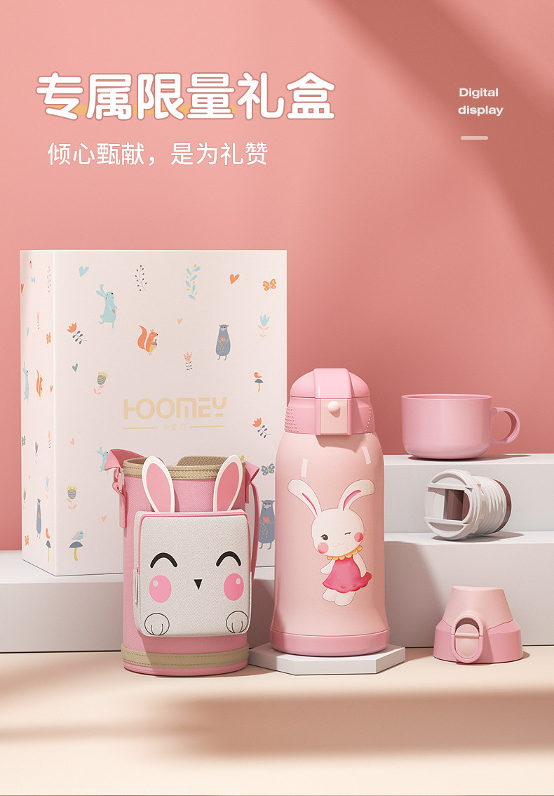 - 【316 Медицинский класс из нержавеющей стали】 Smart Smart Winning+One Cup Cup Four-Cover Pink Rabbit
