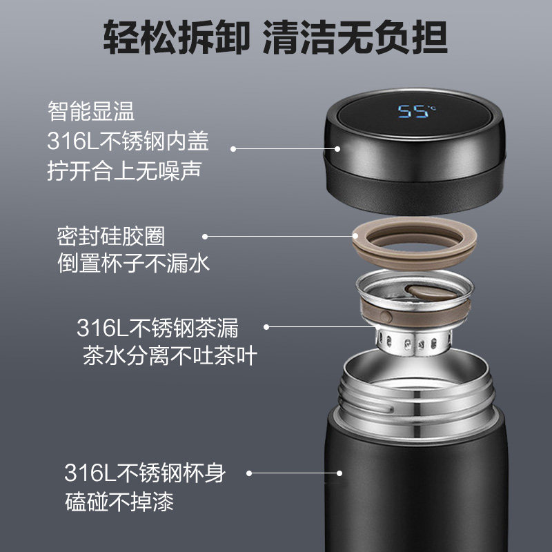 Умный стакан подходит для мужчин и женщин, портативная вместительная и большая чайная чашка из нержавеющей стали