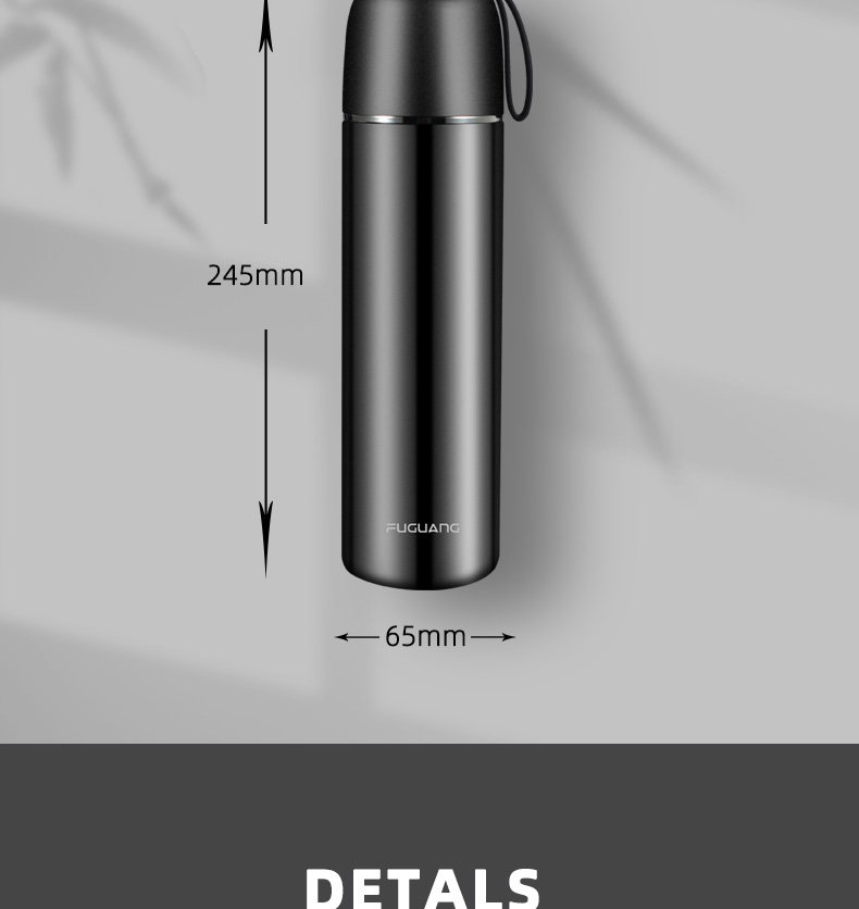 Стакан, портативная вместительная и большая крышка для стакана из нержавеющей стали подходит для мужчин и женщин, нержавеющая сталь AISI 304, 500 мл