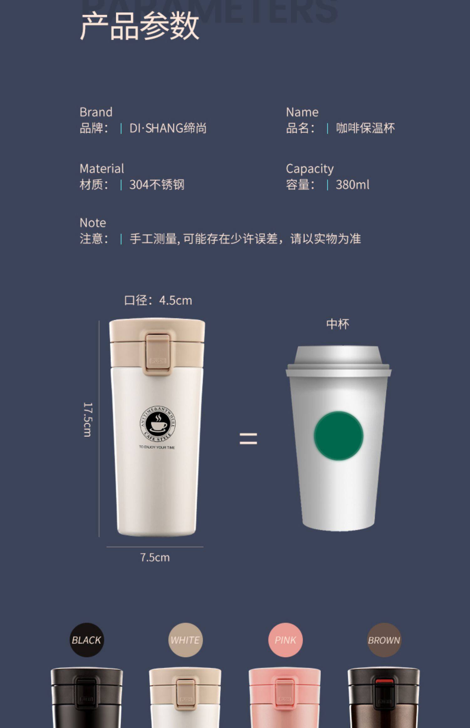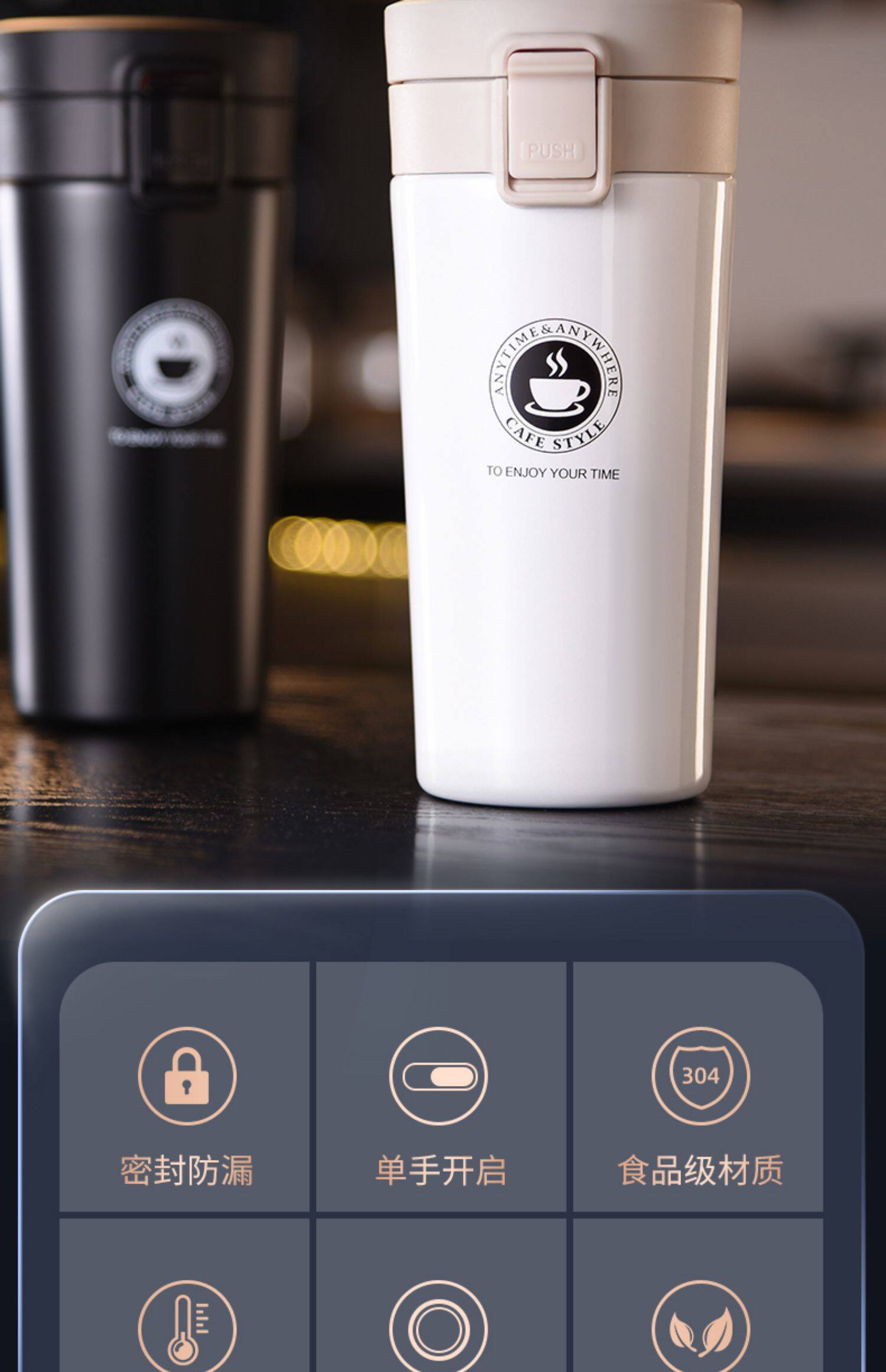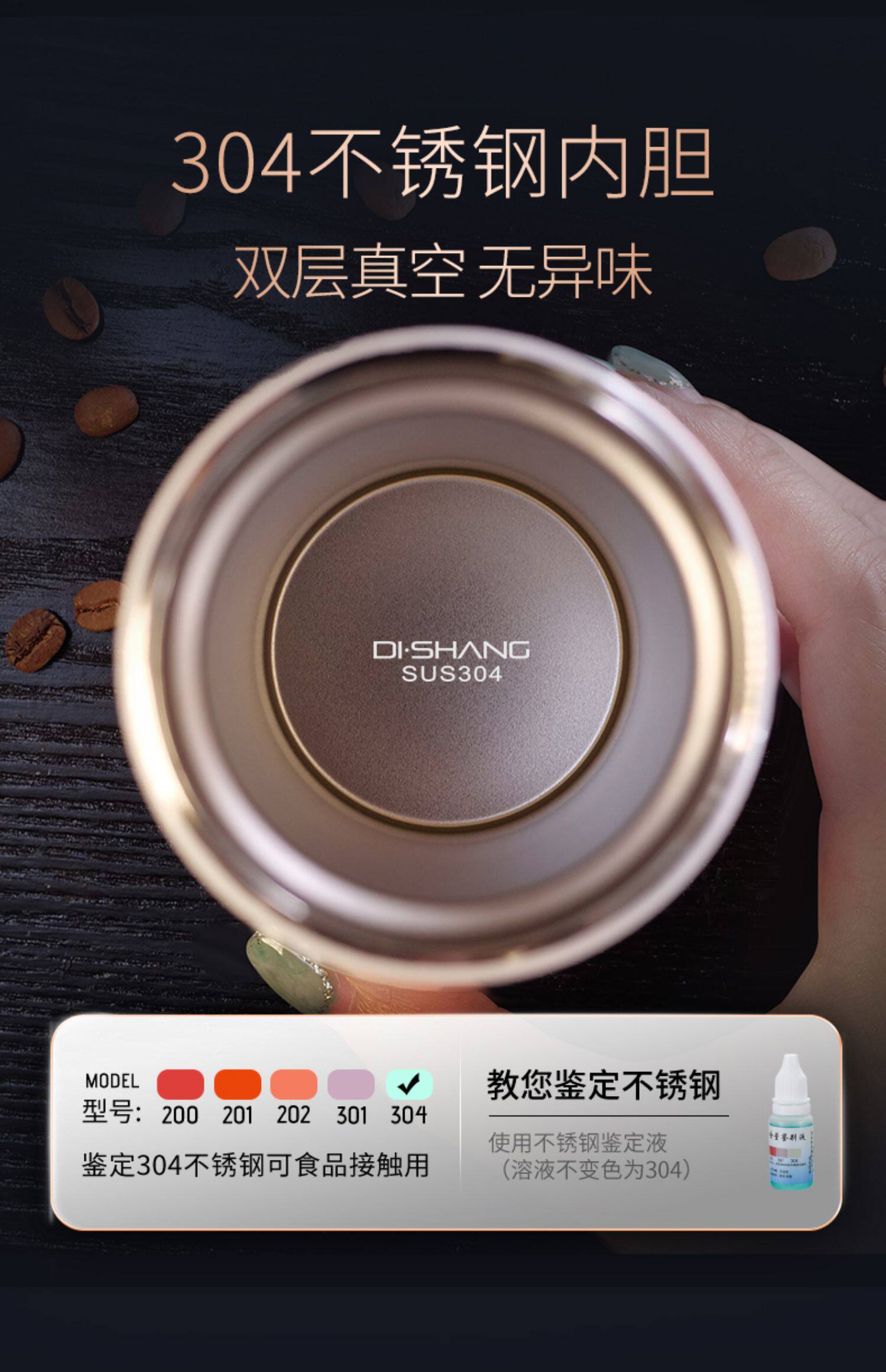 Кофейный высококачественный портативный стакан из нержавеющей стали, нержавеющая сталь AISI 304, простой и элегантный дизайн