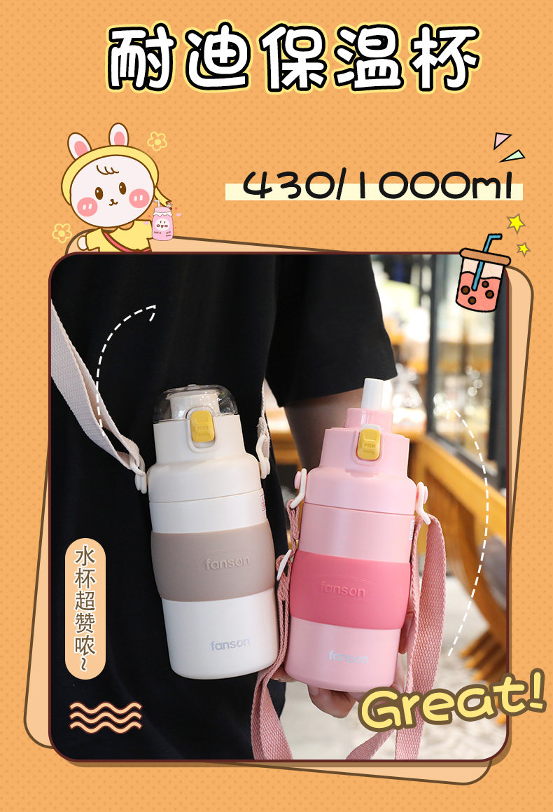 Брендовый вместительный и большой стакан, портативная высококачественная сумка через плечо, 1000 мл