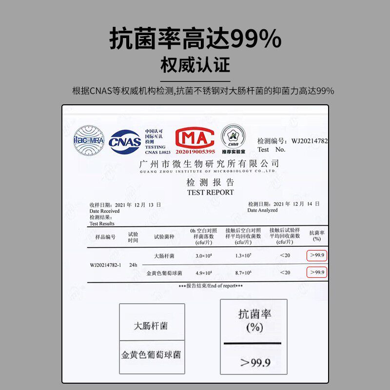 - [Антибактериальная скорость ≥99 %] модернизация сертификата антибактериального материала может быть проверен