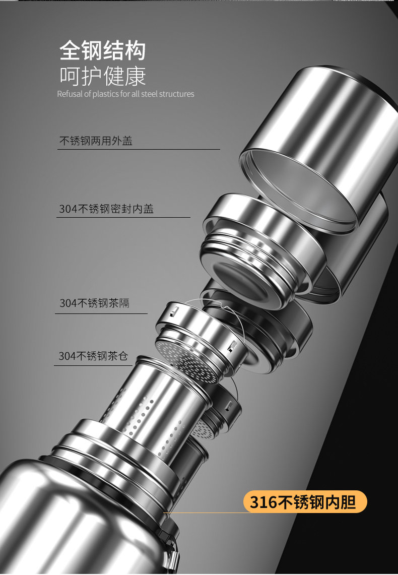 - [Антибактериальная модель] Стальной цвет 800 мл [316 Внутренний вкладыш + чашка и чашка щетка + SF Express Бесплатная доставка]