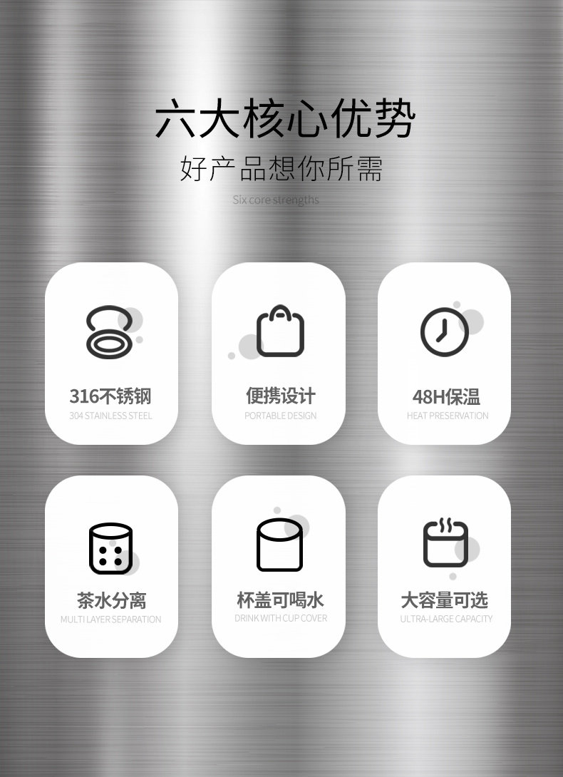 - [Антибактериальная модель] Стальная цвет 2500 мл [316 Внутренний вкладыш + чашка и чашка щетка + SF Express Бесплатная доставка]