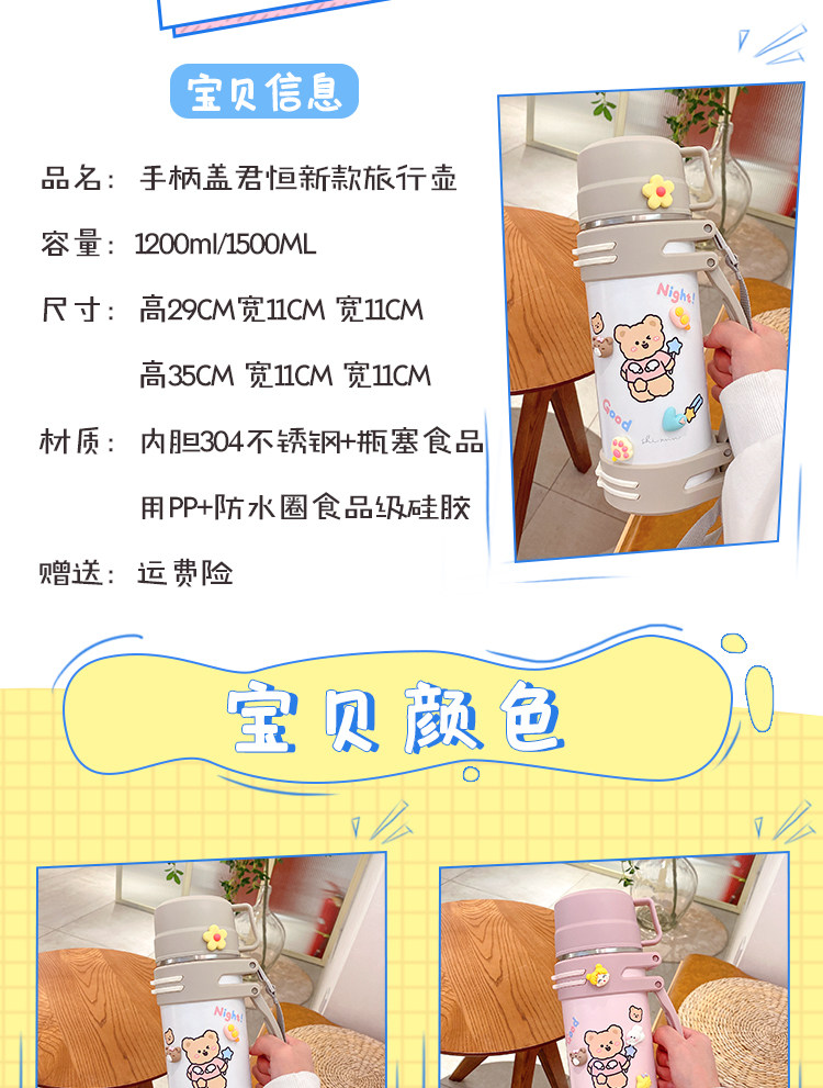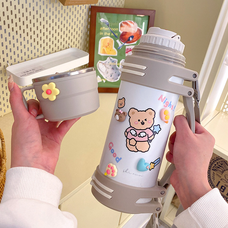 Вместительный и большой термос, детский портативный милый стакан для выхода на улицу, объем 1200, 1200 мл