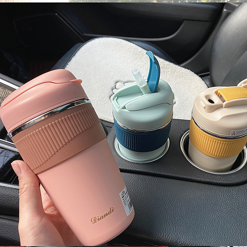 Трубочка из нержавеющей стали для школьников со стаканом, кофейный милый высококачественный портативный стакан