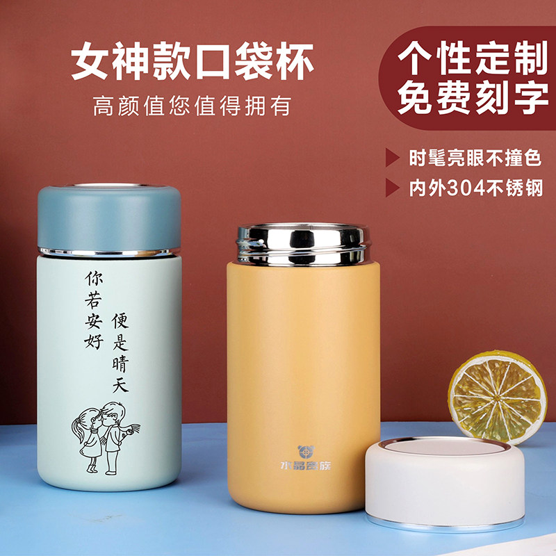 Высококачественный маленький портативный стакан из нержавеющей стали с гравюрой, простой и элегантный дизайн, делается под заказ