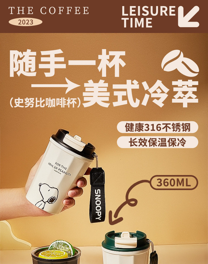 Snoopy, nuby, кофейный термос из нержавеющей стали, стакан, официальный продукт, кола