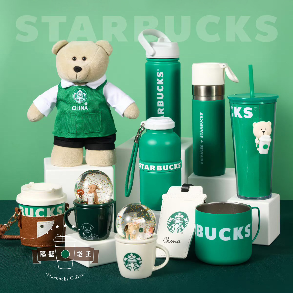 Starbucks, кофейная классическая зеленая трубочка из нержавеющей стали, термос со стаканом, с медвежатами, простой и элегантный дизайн