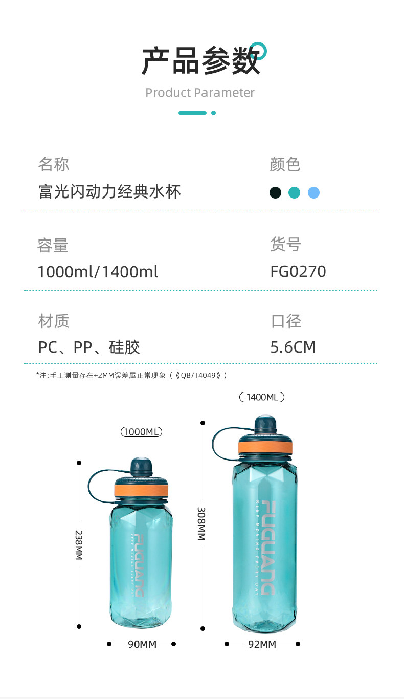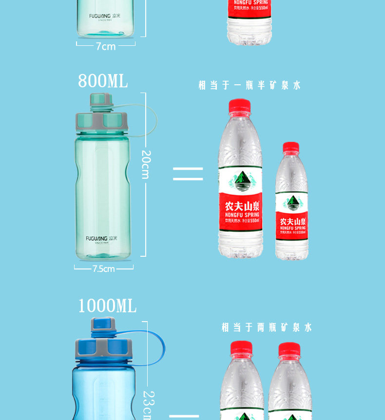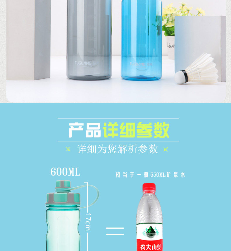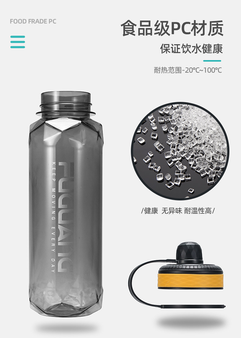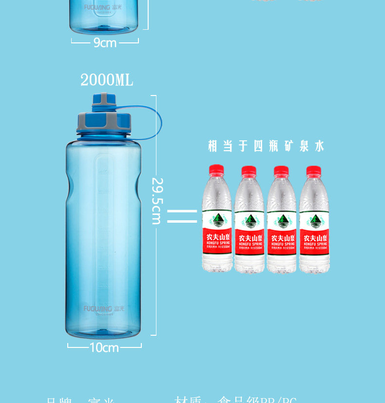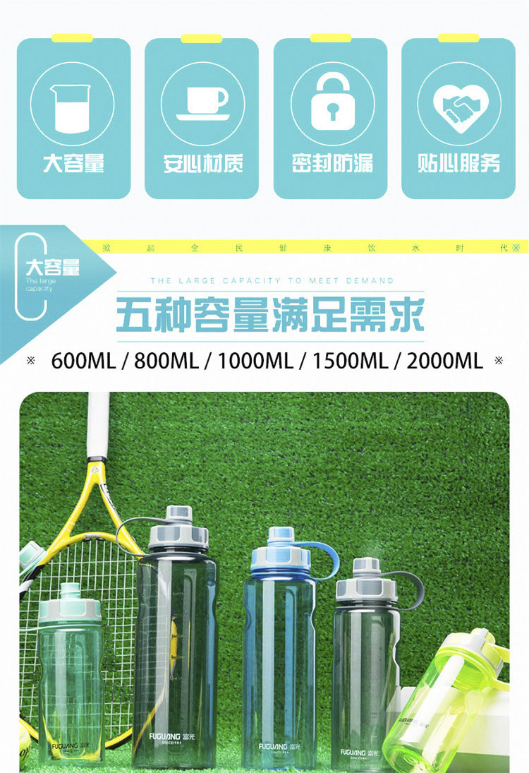 Fuguang Water Cup Men's Men's Compacity PC Пластиковый студент Aquarius Pallable Portable Sports Pot 2000 мл Летнего космического чашки