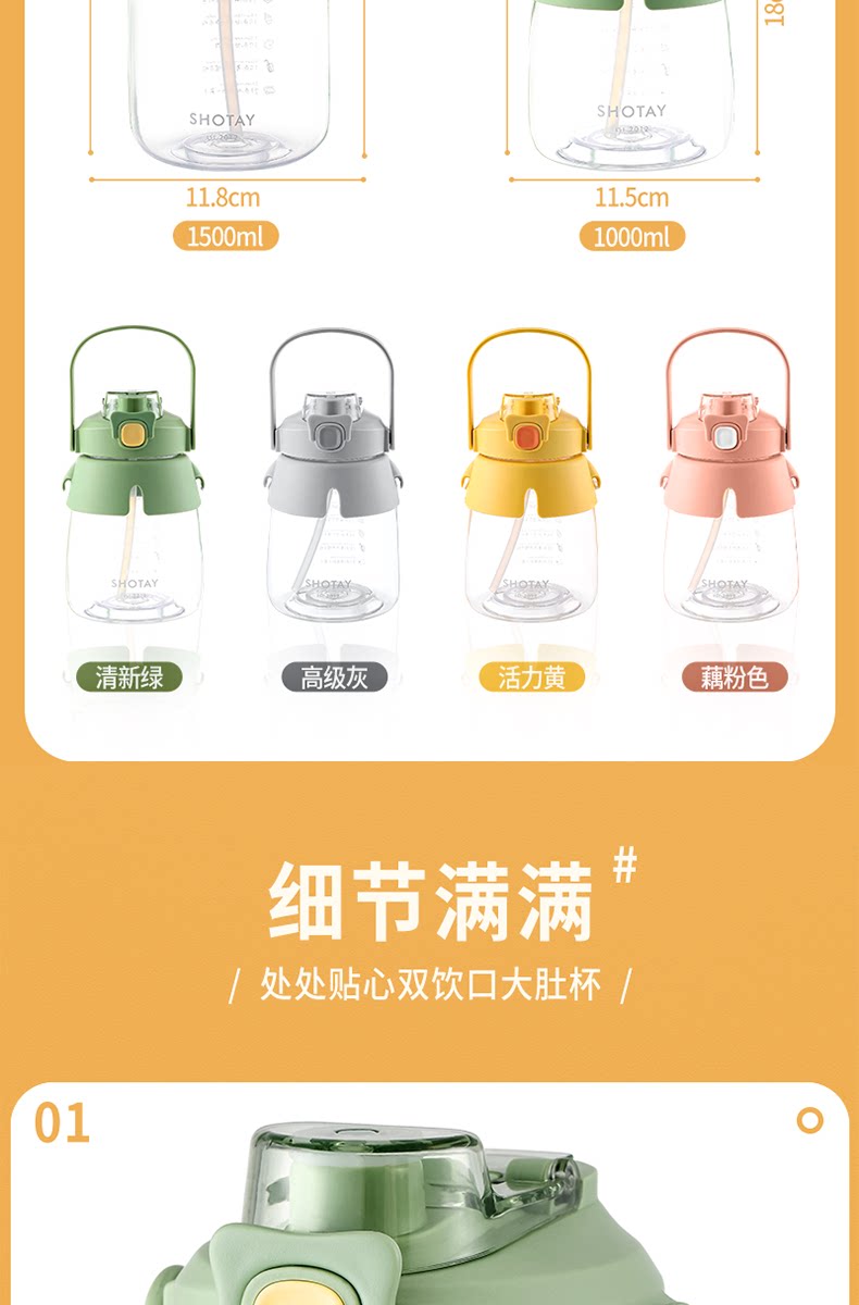 - Наклейка, подтяжки, трубочка, 1500 мл