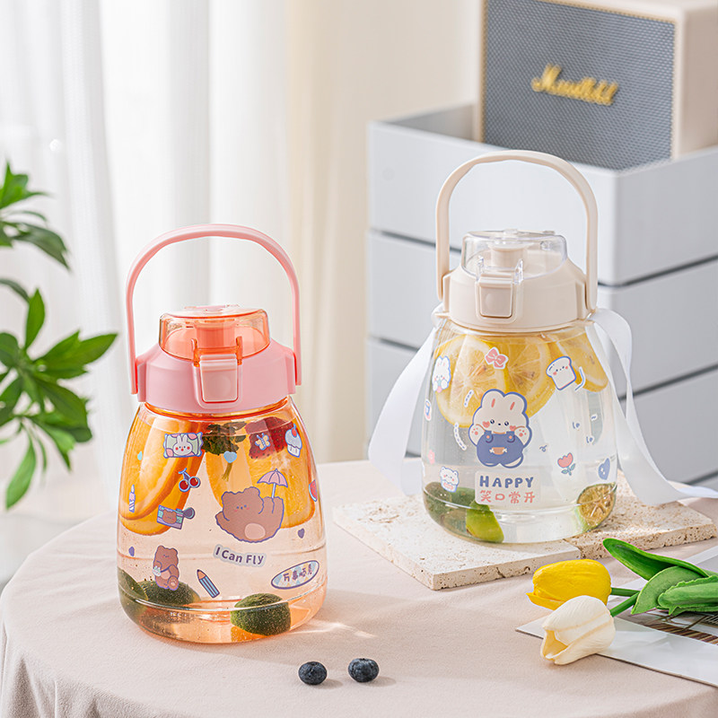 Вместительная и большая спортивная бутылка со стаканом, летняя космическая детская трубочка