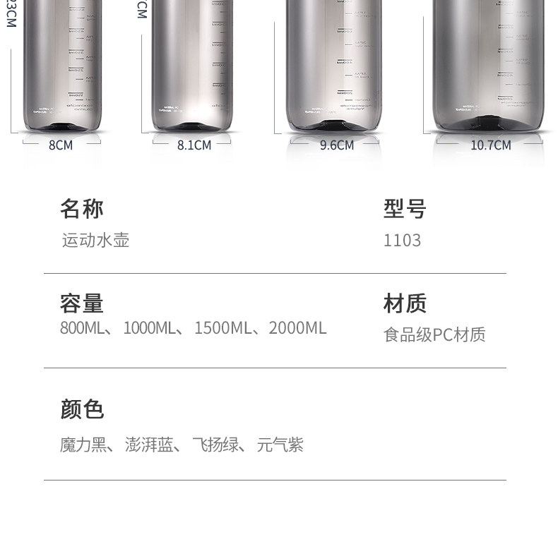 Спортивный вместительный и большой пластиковый портативный летний чайник для спортзала