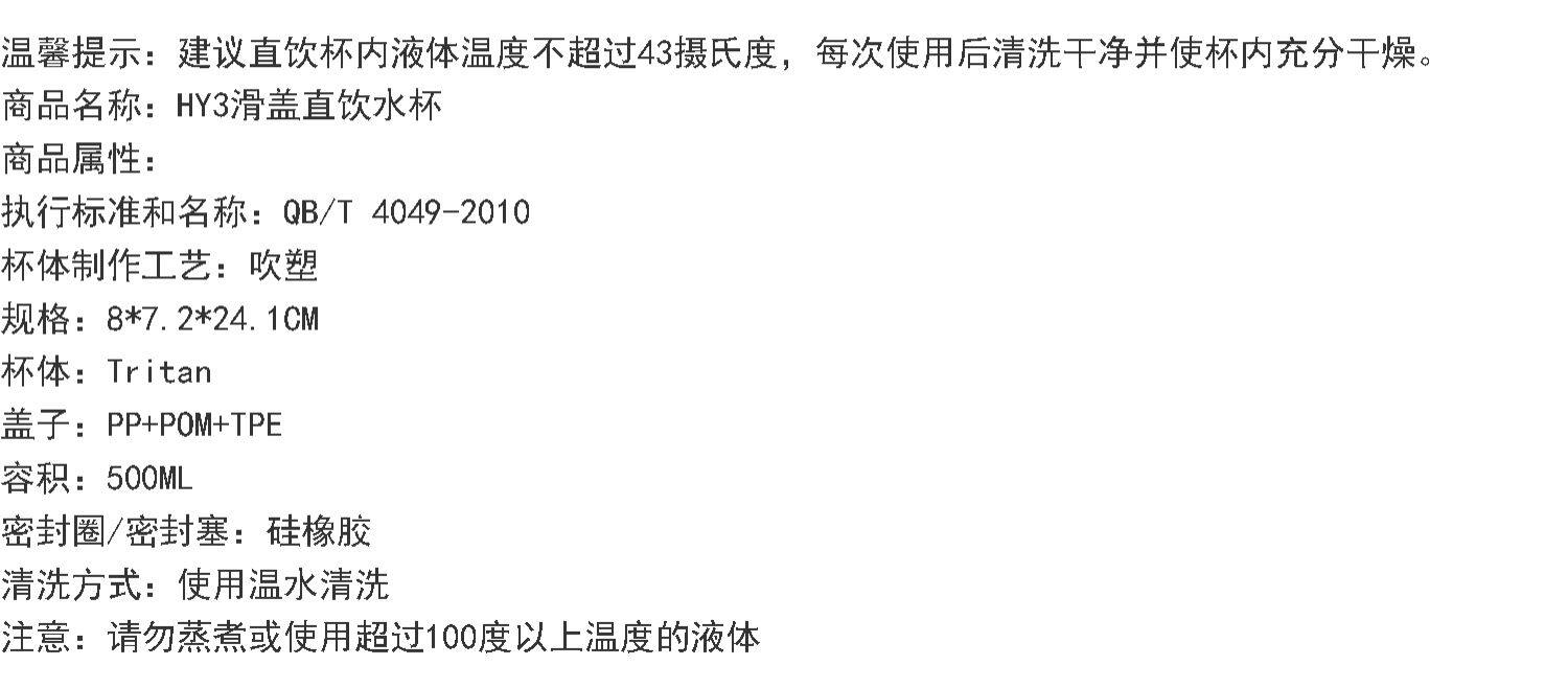 HY3 Покрытие отскока Tritan Студенческая детская чашка питья 500 мл.
