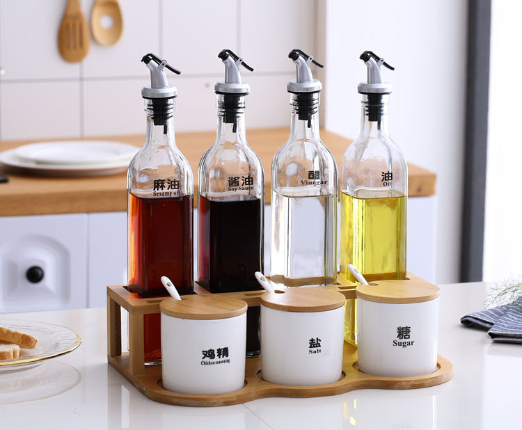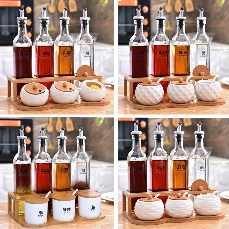 Комбинированная бутылка для стеклянного масла домохозяйственное масло и соленый кунжутный соус уксусной горшок кухонный керамический приправа банки для бутылок приправы соль соль банка