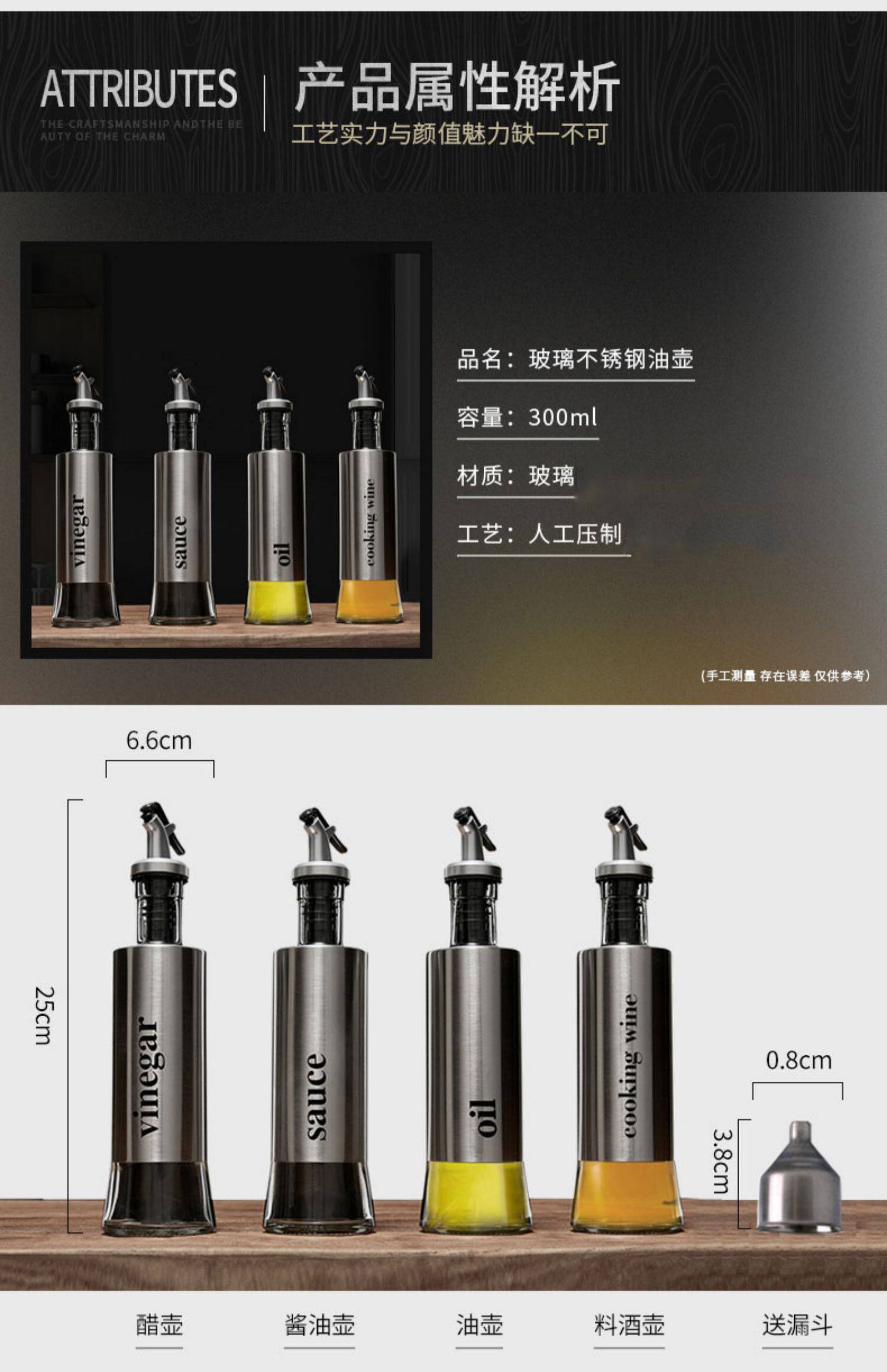 Стеклянный герметический дозатор масла из нержавеющей стали, европейский стиль