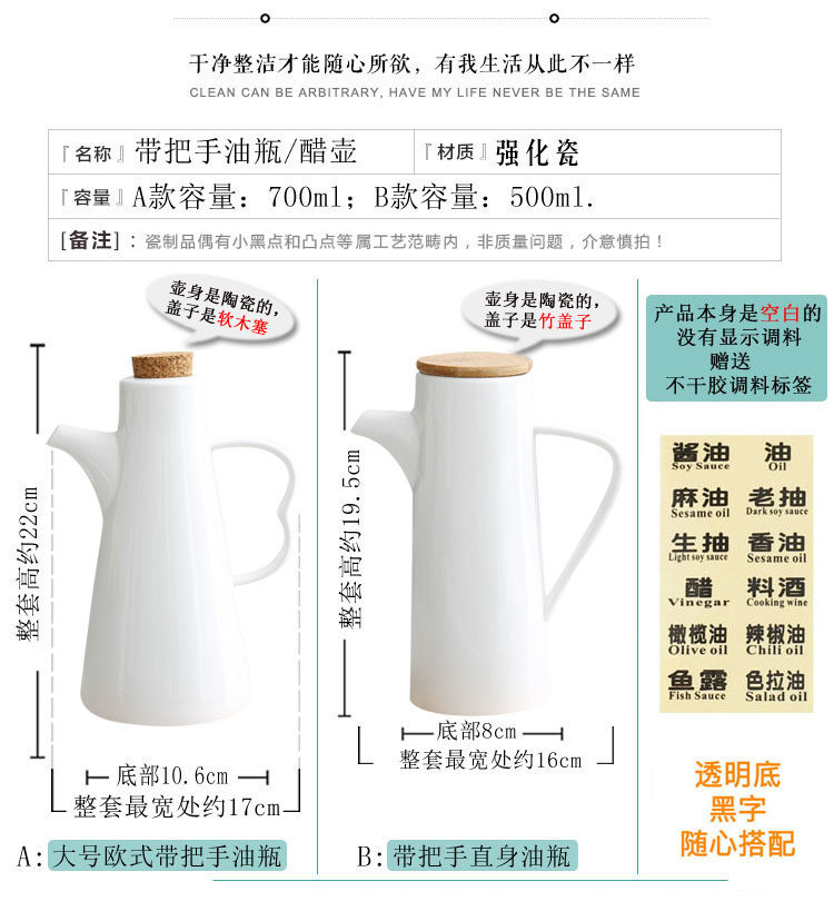 Домашний керамический масляный горшок кухонная продукция приправа бутылка предыдущая постоянная масляная горшка Прогулка бутылка соевый соус ремень