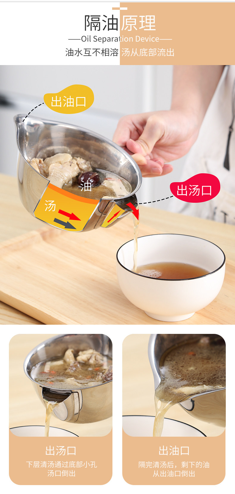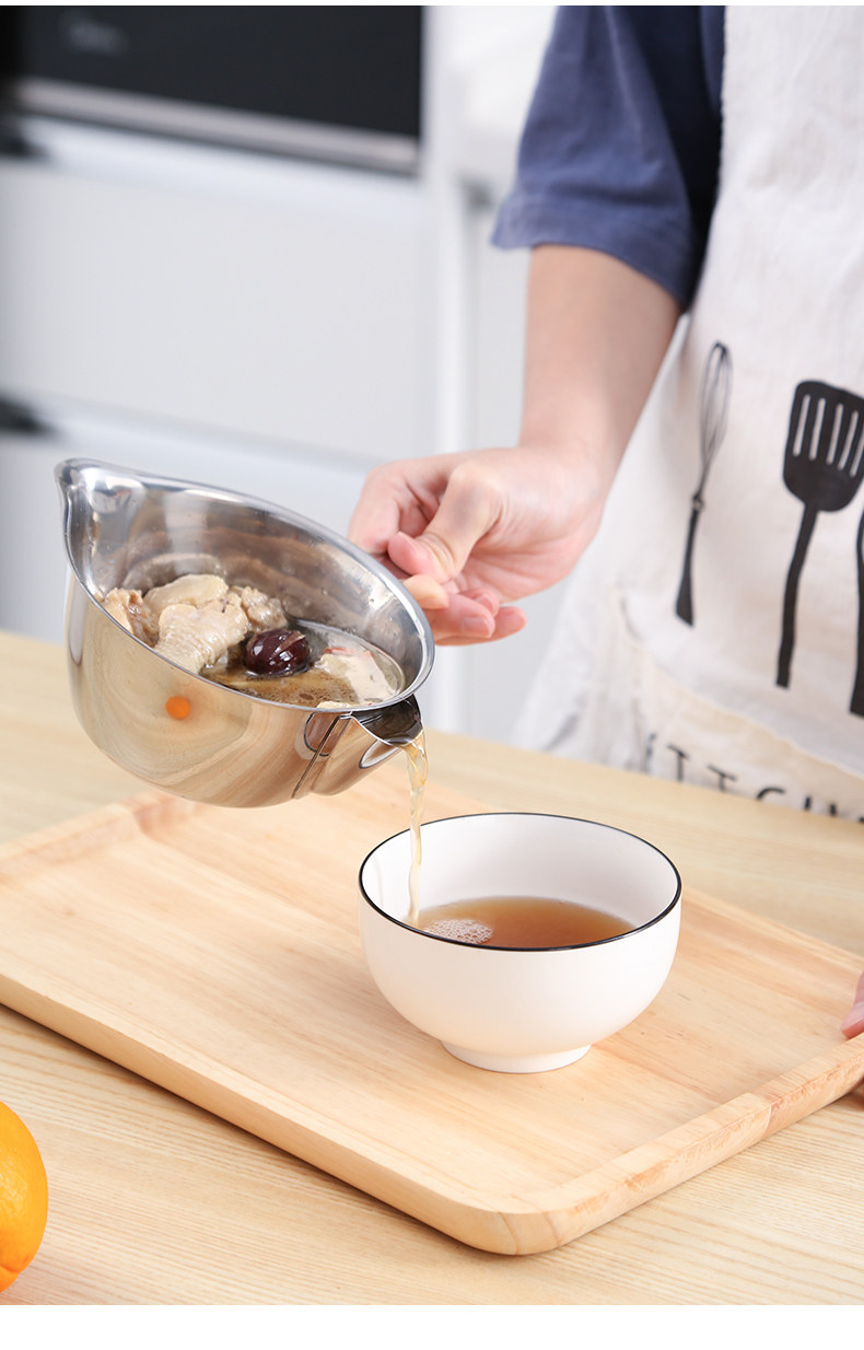 Масляный суп -сепаратор кухонный фильтровал масляный артефакт, возьмите ограничение, выпить суп, масляная миска с масляным супом из масляного масляного бака.