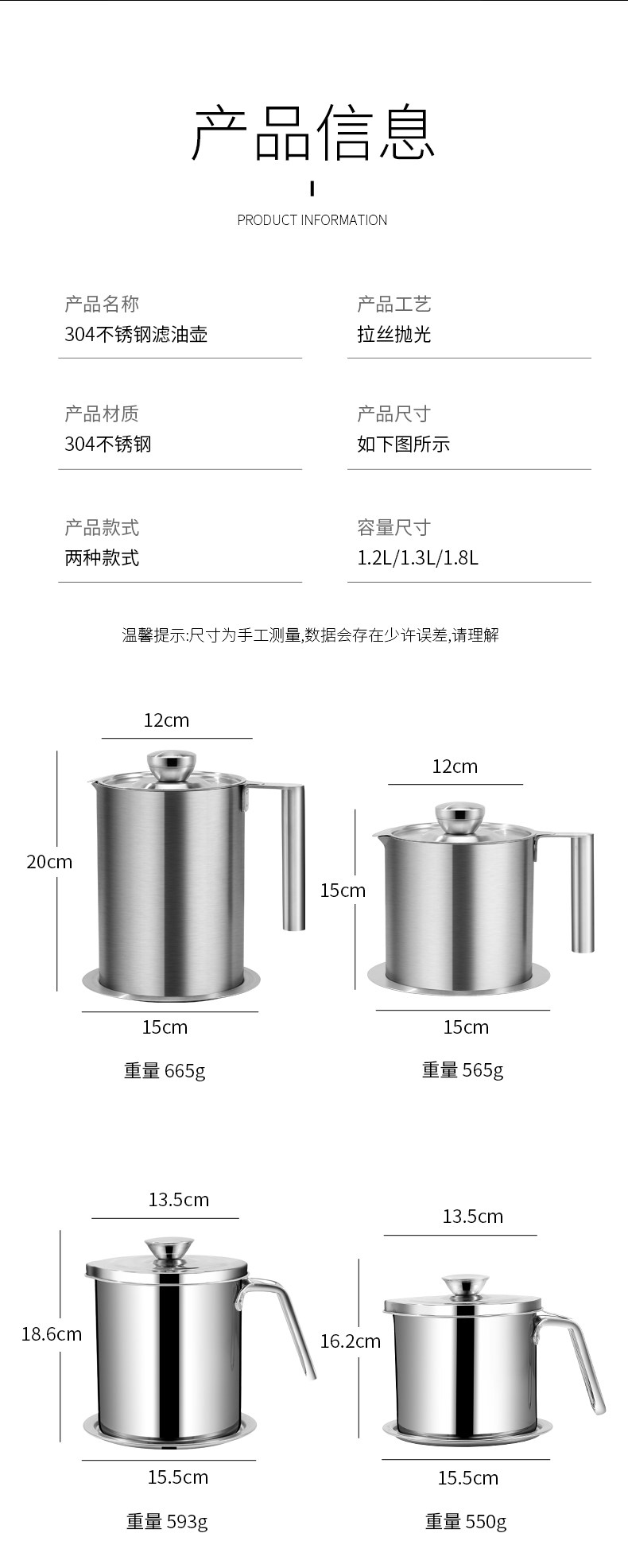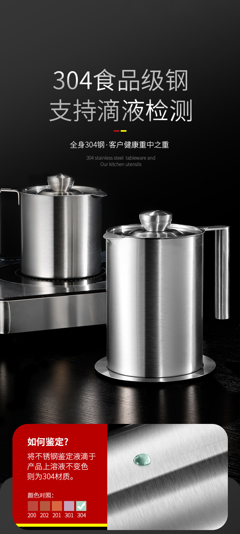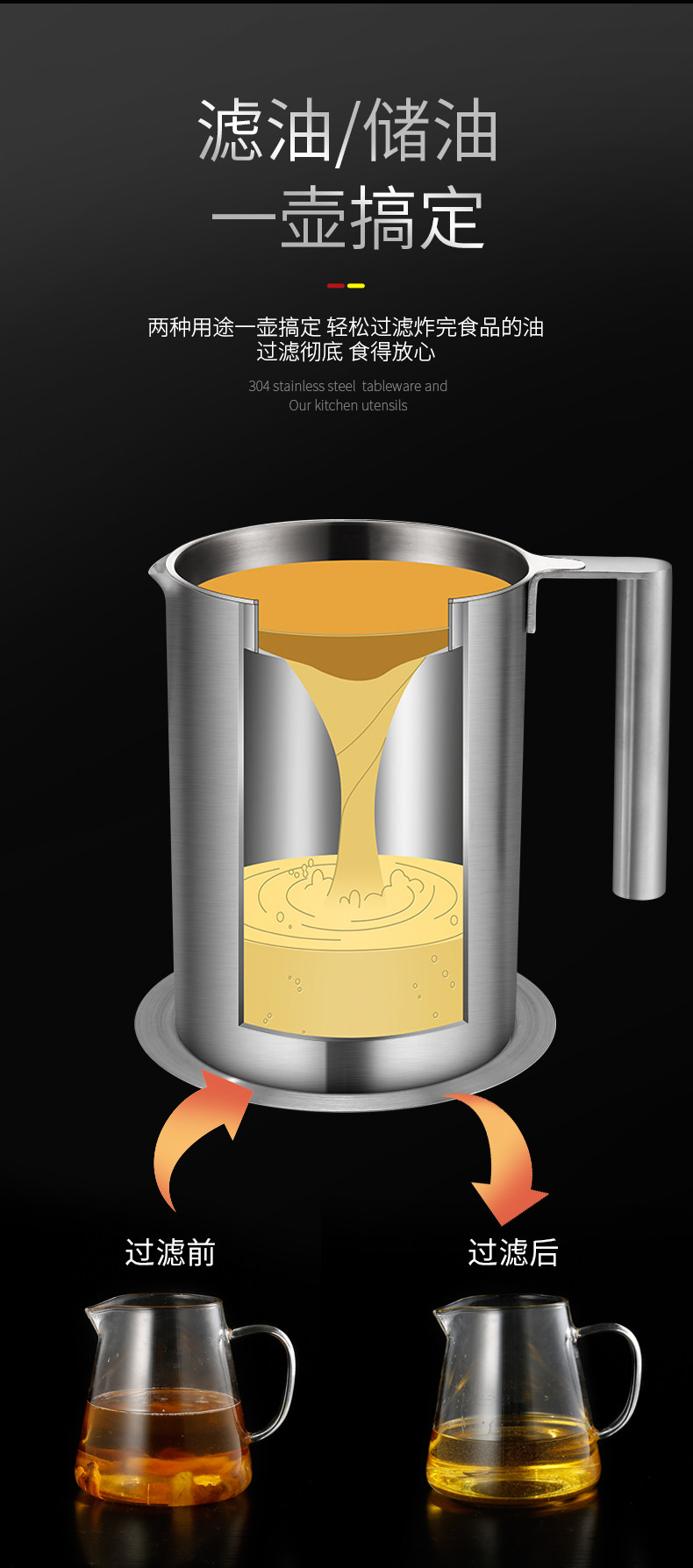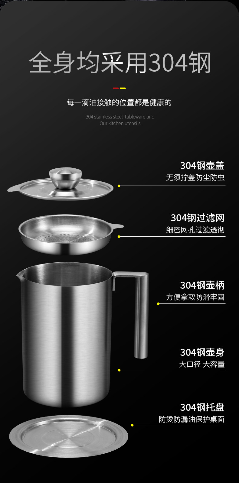 Фильтр из нержавеющей стали, вместительный и большой дозатор масла, нержавеющая сталь AISI 304