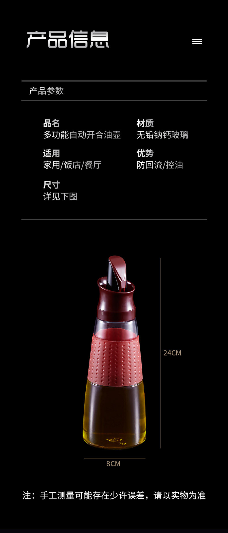 Стеклянный герметический автоматический складной прозрачный дозатор масла