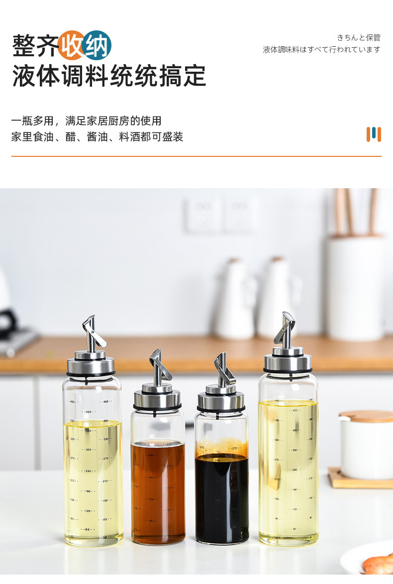 Японский стеклянный герметический дозатор масла из нержавеющей стали, комплект