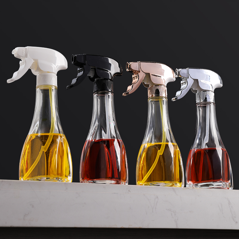 Впрыскивание горшечного пищи со стеклянной форсунок бутылка с жареные плита.