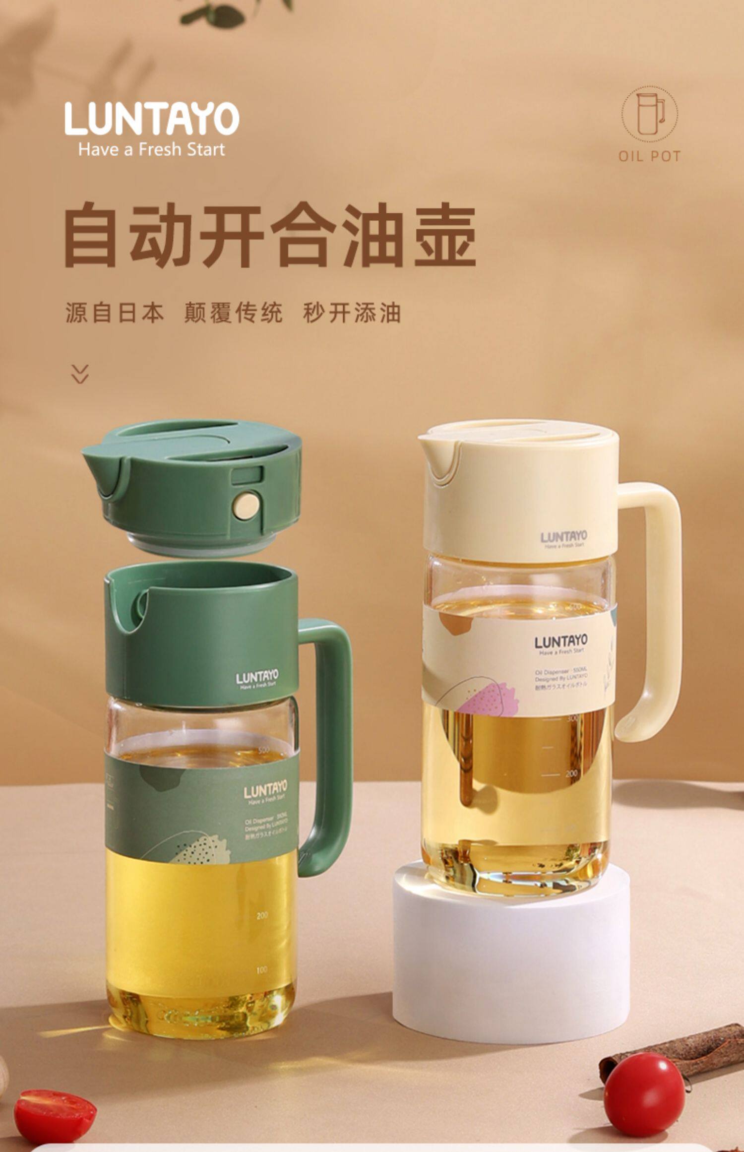 Японский стеклянный вместительный и большой герметический гравитационный автоматический складной комплект, дозатор масла