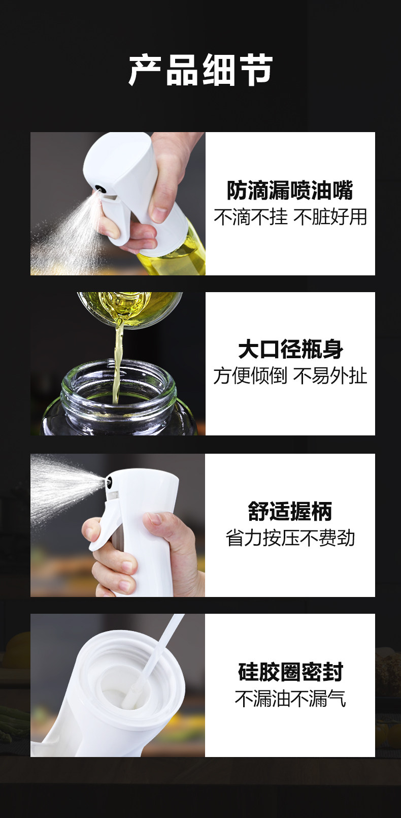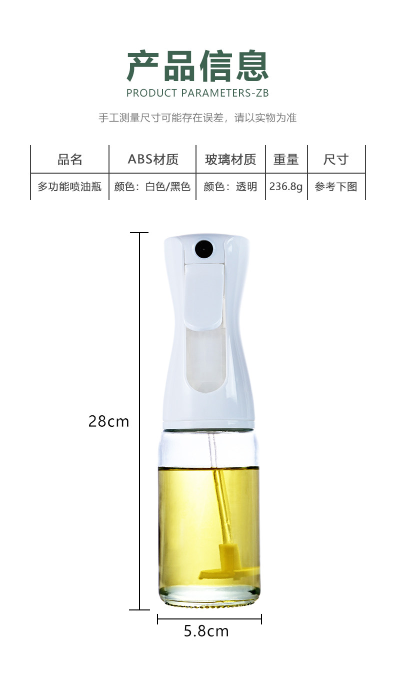 Бытовая бутылочка с распылителем масла нажимного типа. Стеклянная бутылочка с распылителем масла, подходящая для фритюрниц. Бутылка для количественного контроля масла Chuang Wood Workshop