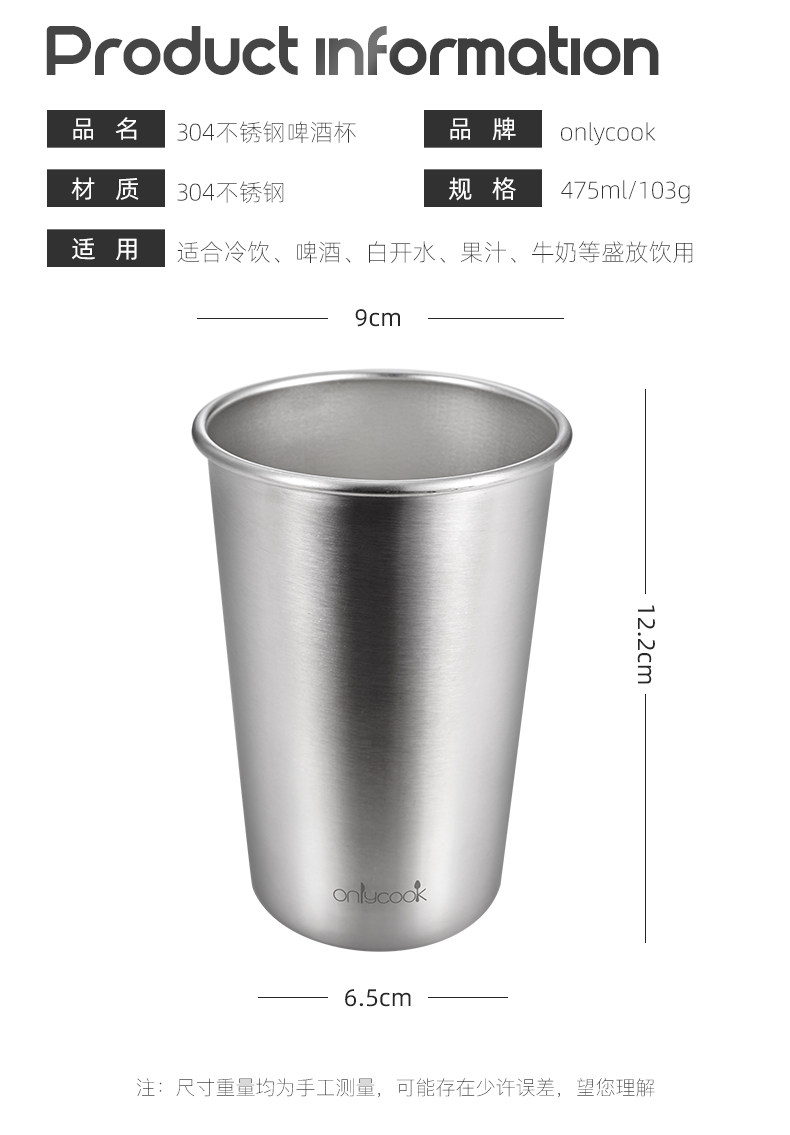 onlycook Пищевая кладка 304 металлическая стакана из нержавеющей стали