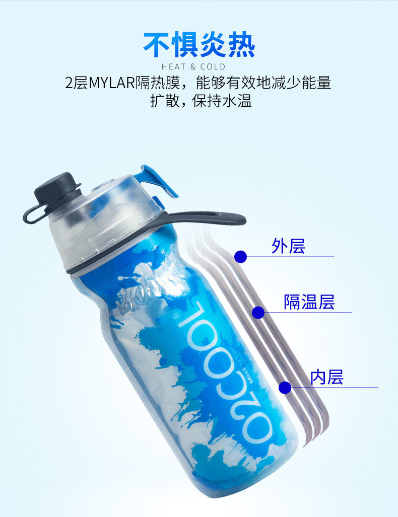 Американская O2Cool Spray Cup Kids Студенческая Cold Cul Cul Sports Fitness Outdoor Portable Water Cup