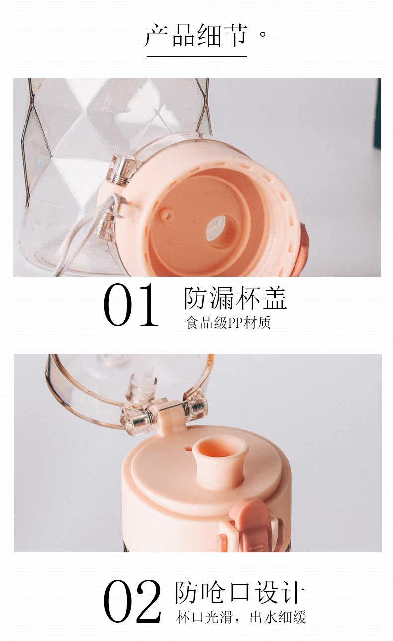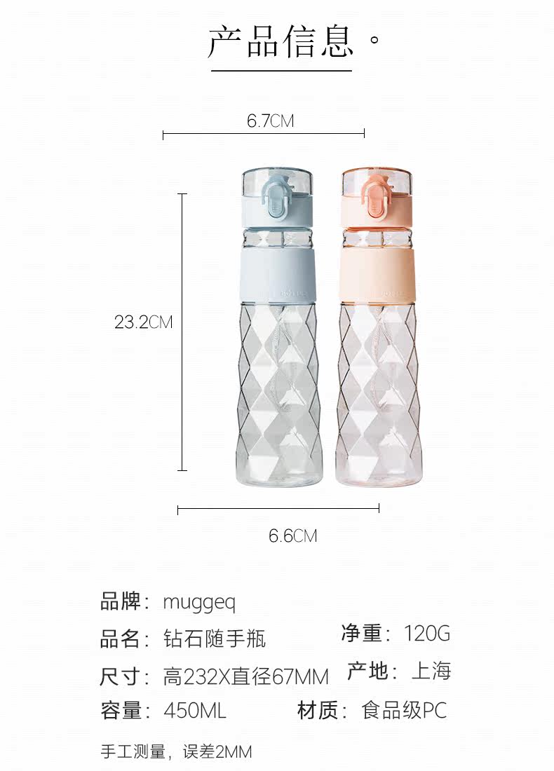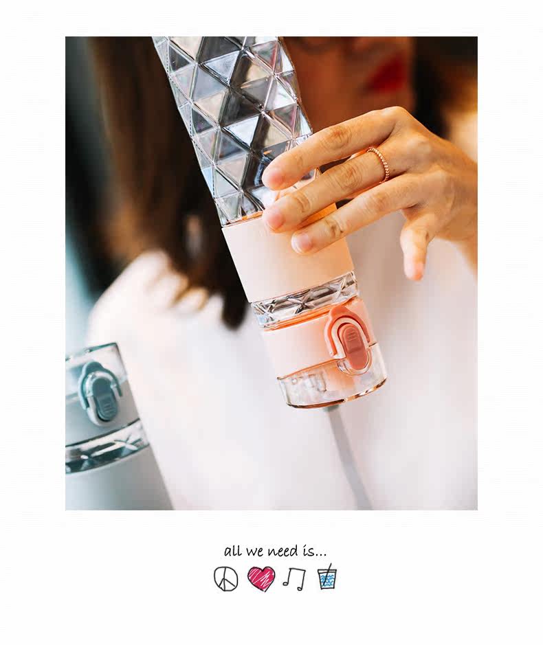 Muggeq Diamond Sports Sports Plastic Cup Студент творческий бриллиант портативный крупный