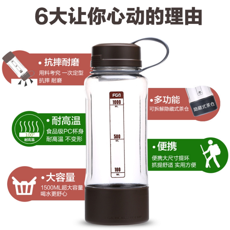 富光 Классическая космическая портативная пластиковая вместительная и большая чайная чашка, летний фильтр