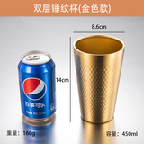 Двухэтажная золотая чайная чашка из нержавеющей стали, бокал, корейская посуда, нержавеющая сталь AISI 304, защита от ожогов