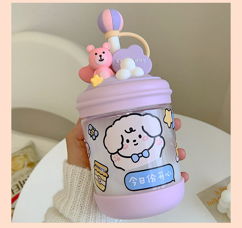 Милая пластиковая трубочка, портативный высококачественный детский холодный напиток для школьников, популярно в интернете, с медвежатами
